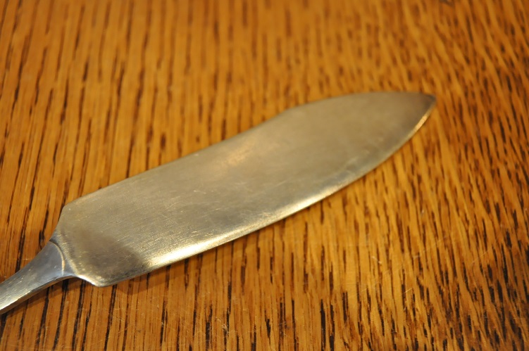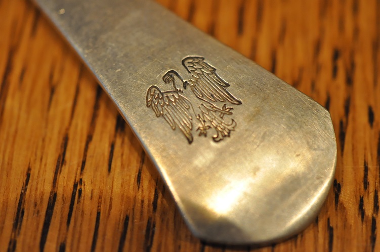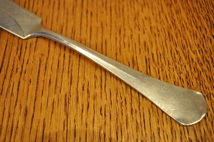 Нож имеет оригинальное серебрение, без потертостей и дефектов покрытия.