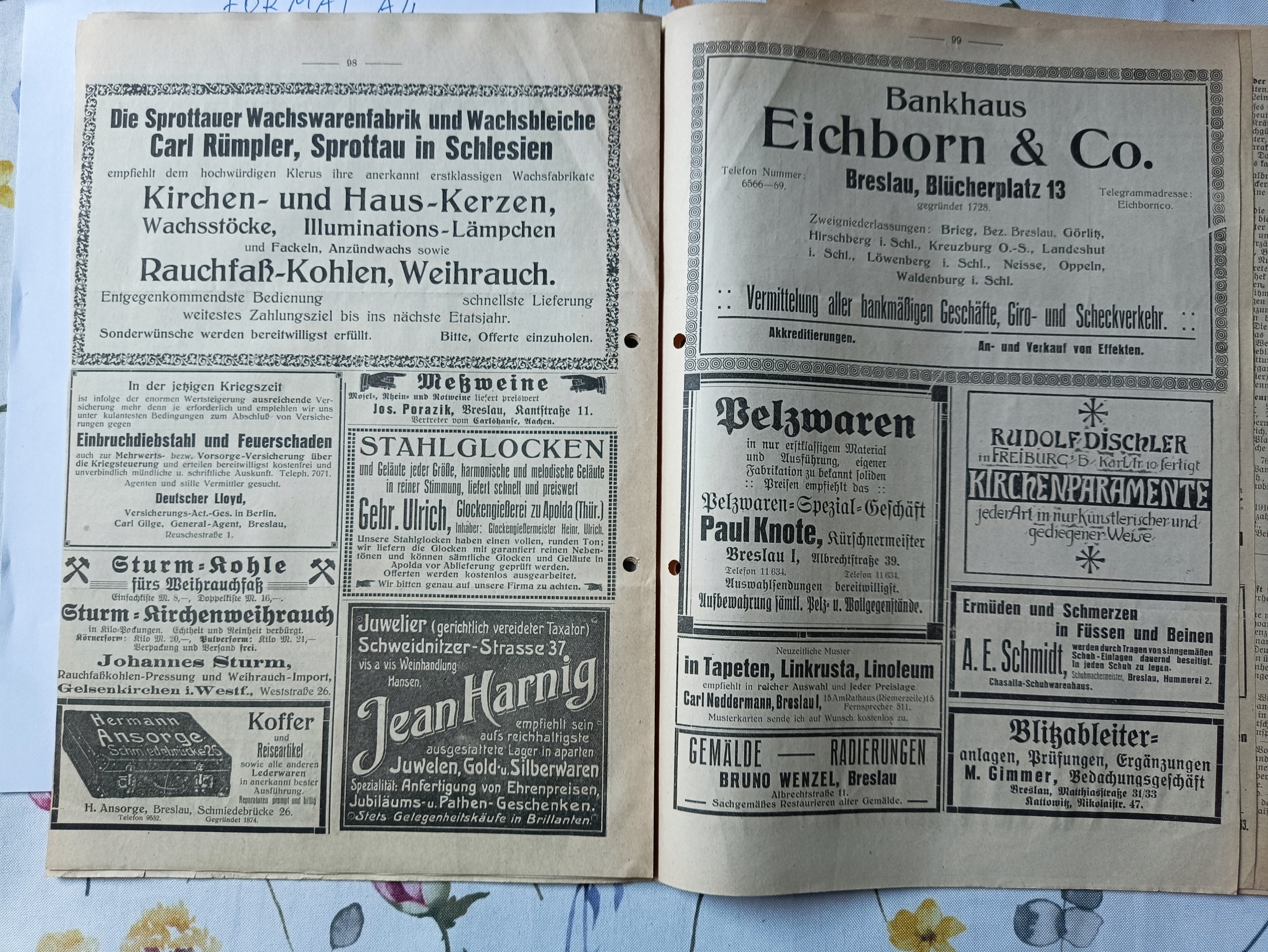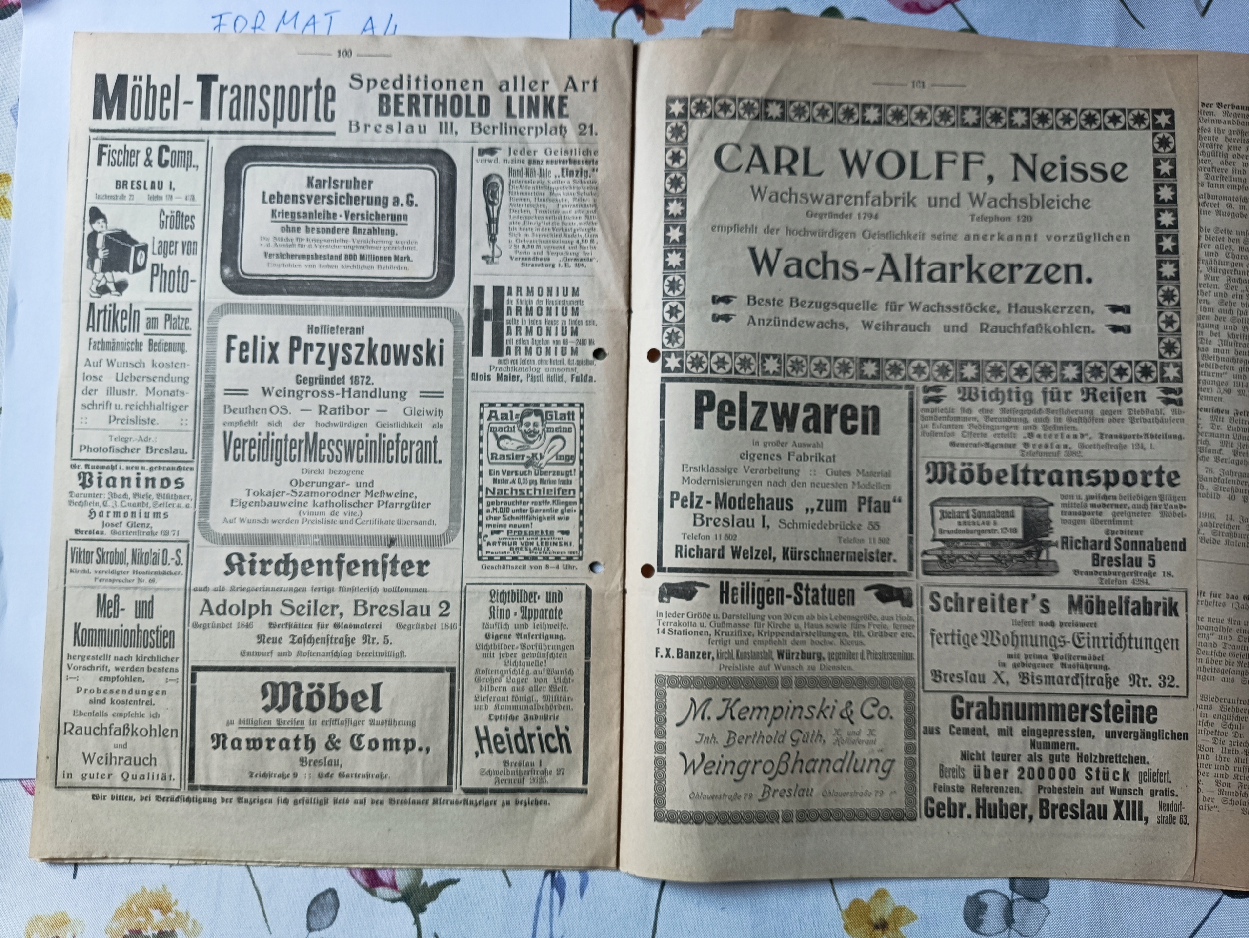 Два журнала Wroclaw: Anzeiger für Die Katholische Geistlickeit der Eocae Breslau (Бюллетень для духовенства католической епархии Вроцлав). Один из вопросов 1918 года и один с 1915 года. Выдается во Вроцлаве - Бреслау. Немецкий. набор.