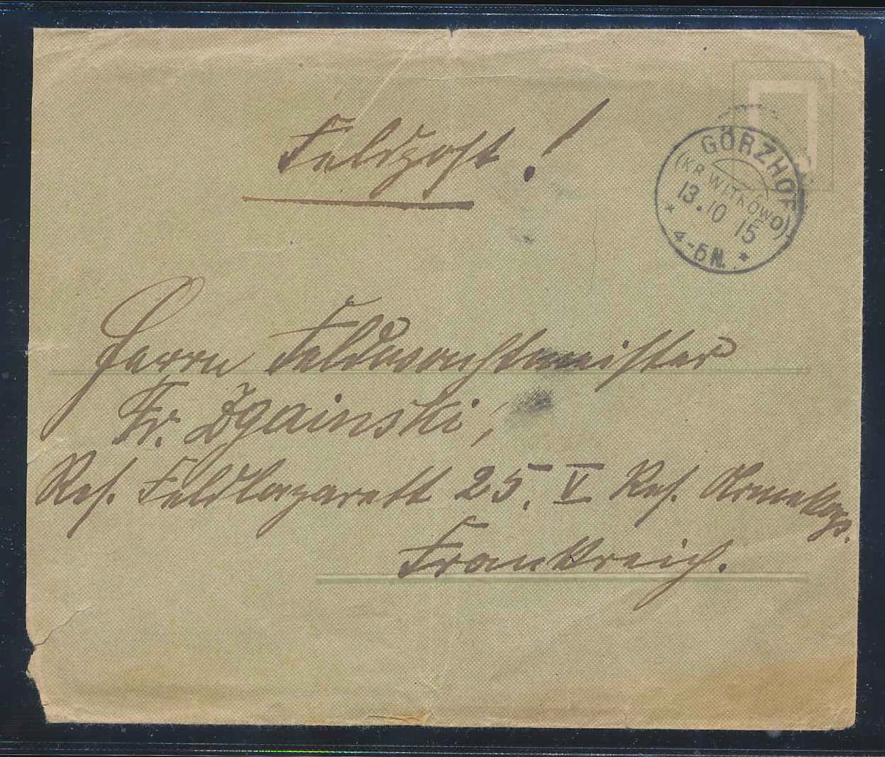 1915 I WW, DR, Wielkopolska, Feldpost Gorzhof Kr.witkowo/Gorzykowo.