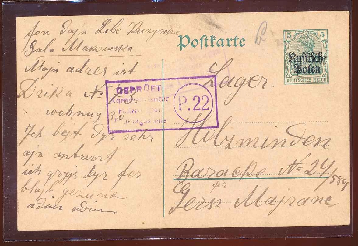 1916 I Village, Лодская карта в лагерь Хольцминден, цензура. Иудайка.
