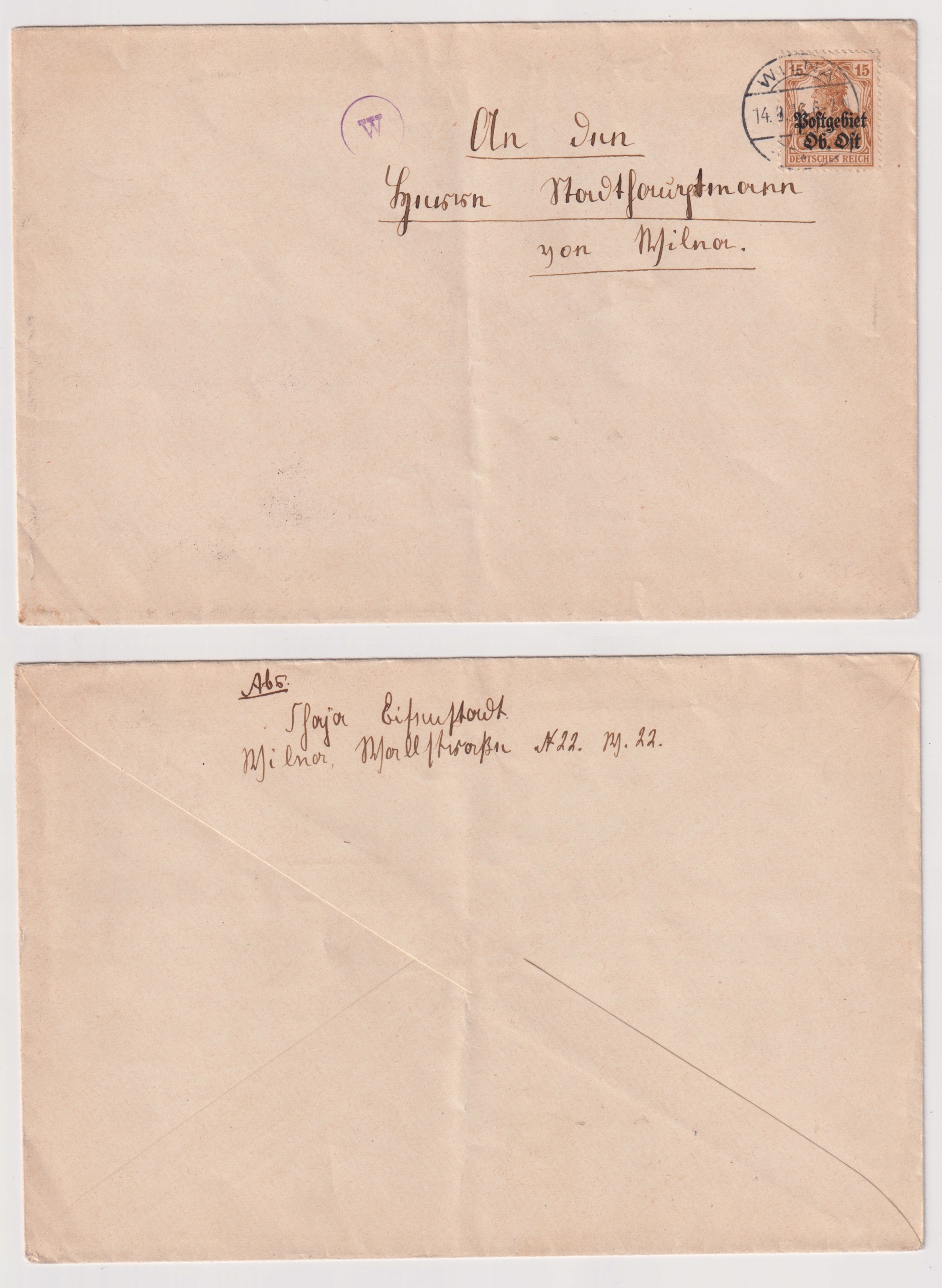 1916 г. Обер Ост Вильний местный письмо с цензурой