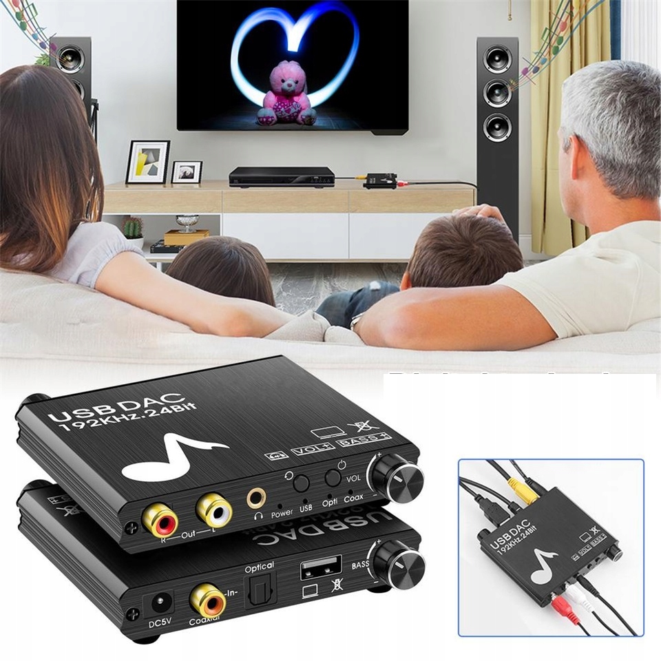 Этот продукт был специально разработан для профессиональной обработки аудиосигнала. Вы можете легко преобразовать цифровой аудиосигнал с коаксиального или оптического входа в аналоговый стереоаудиосигнал через интерфейс RCA и разъем для наушников 3,5 мм.