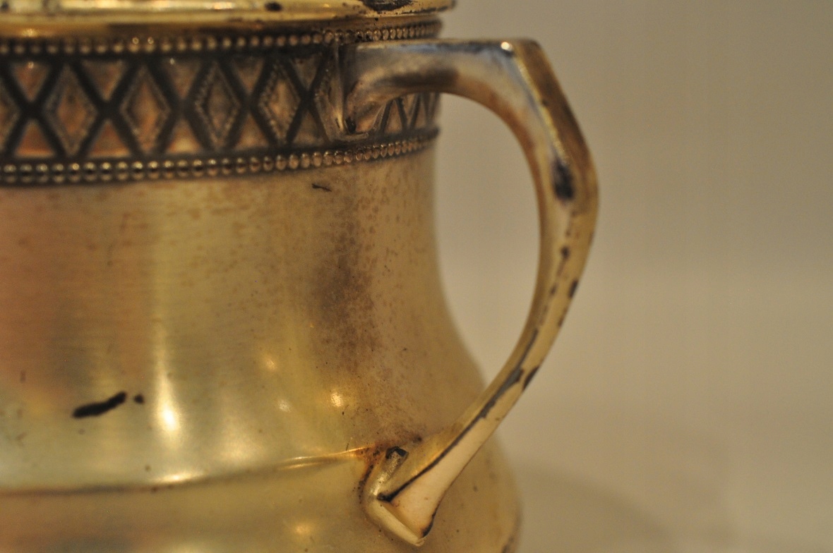 Позолота внутри сахарницы с потертостями покрытия на высоте одной из ручек.
