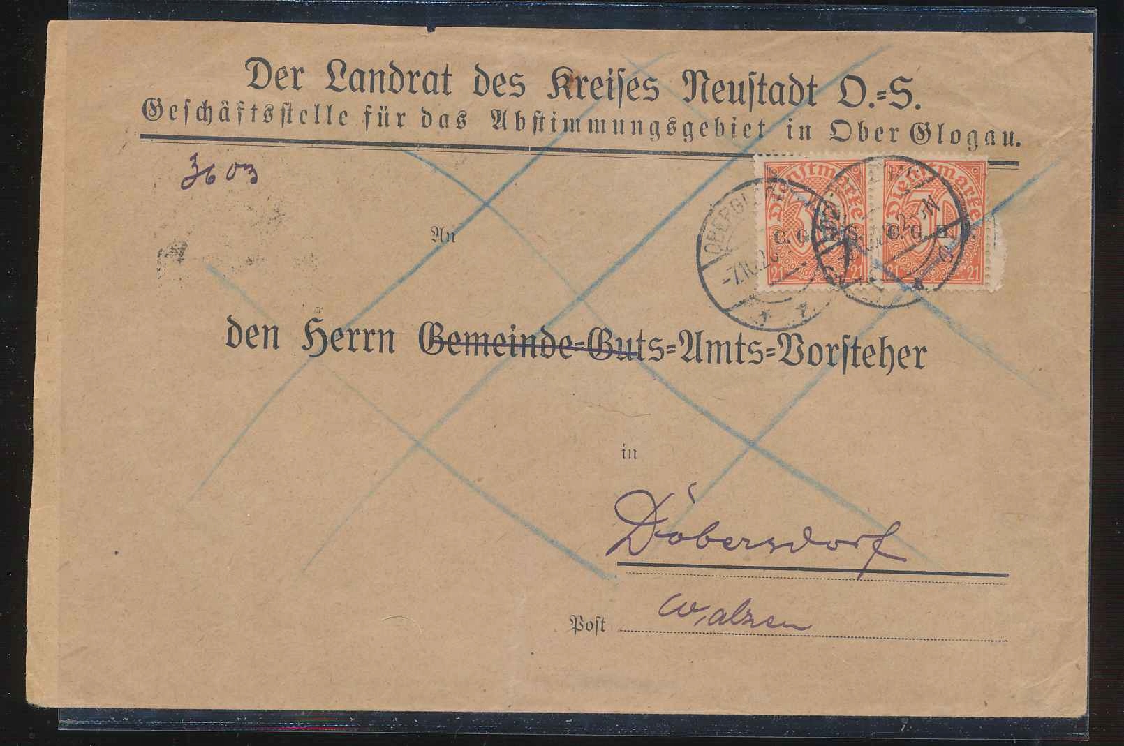 1920 Верхняя Силезия плебисцит, Официальный конверт Obergogau/Głogówek, C.G.H.S.