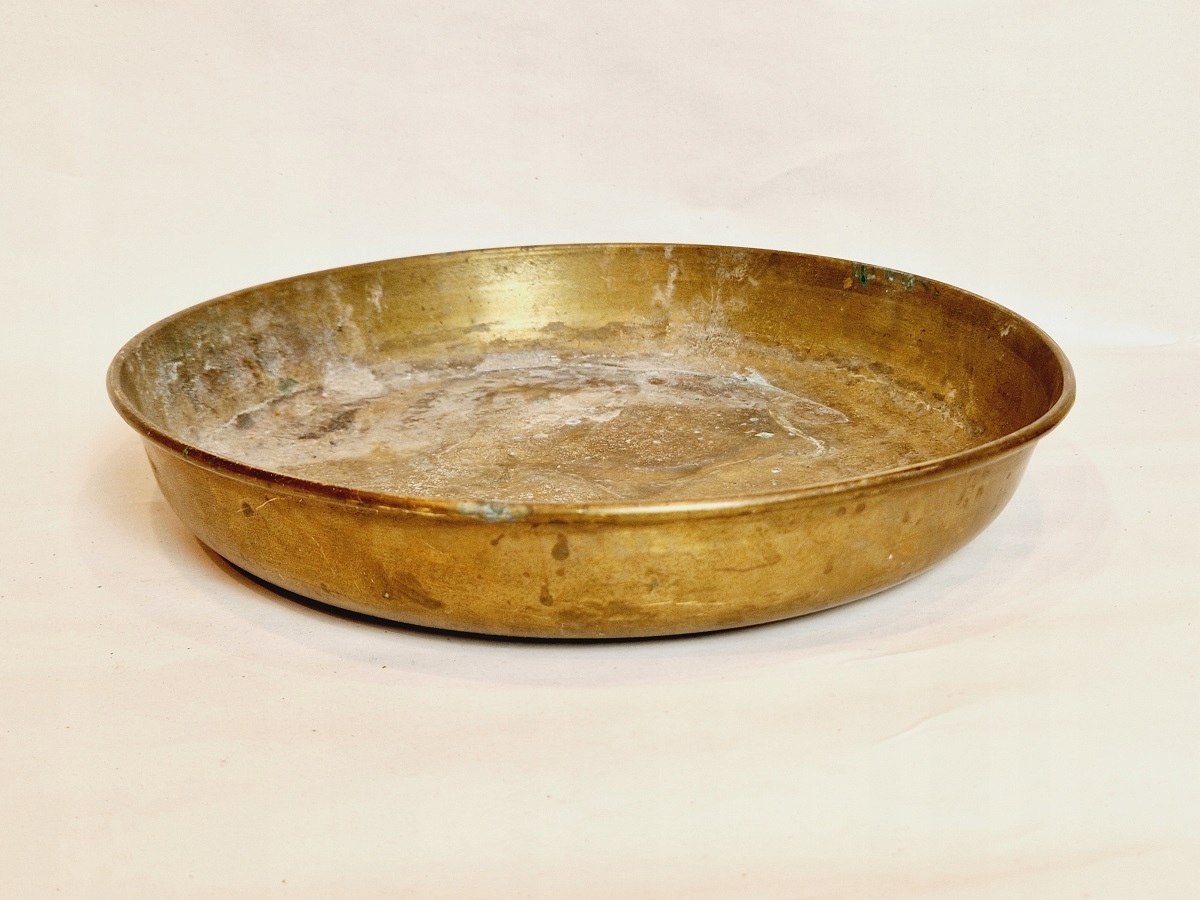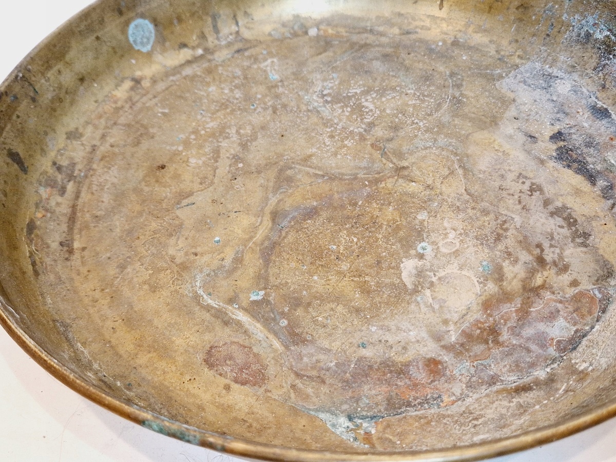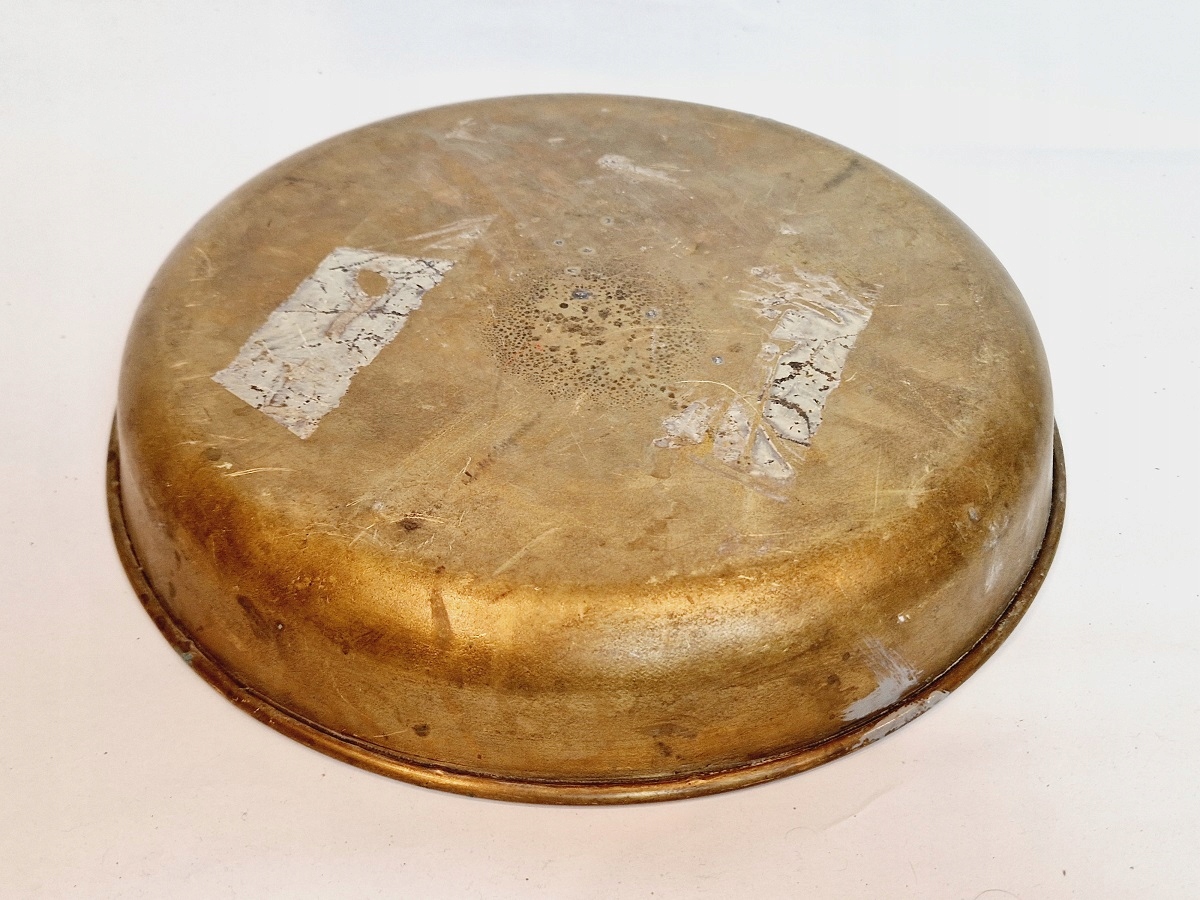 Сковорода покрыта оригинальной, старой патиной с пятнами ржавчины и потертостями - давно не чистилась.