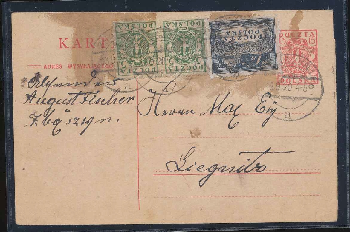 1920 ВЕЛИКАЯ ПОЛЬША, ИНФЛЯЦИЯ, всего 15ф. рефинансирован 1.10Мк. ЗБЭШЬЯ в Легницу. Стоимость доставки 10 злотых. Приоритетное заказное письмо. РЕГИОНАЛИИ, МАЛАЯ РОДИНА - ЗБЭШИ, НОВЫЙ ТОМИСЛЬ, ВЕЛКОПОЛЬША.