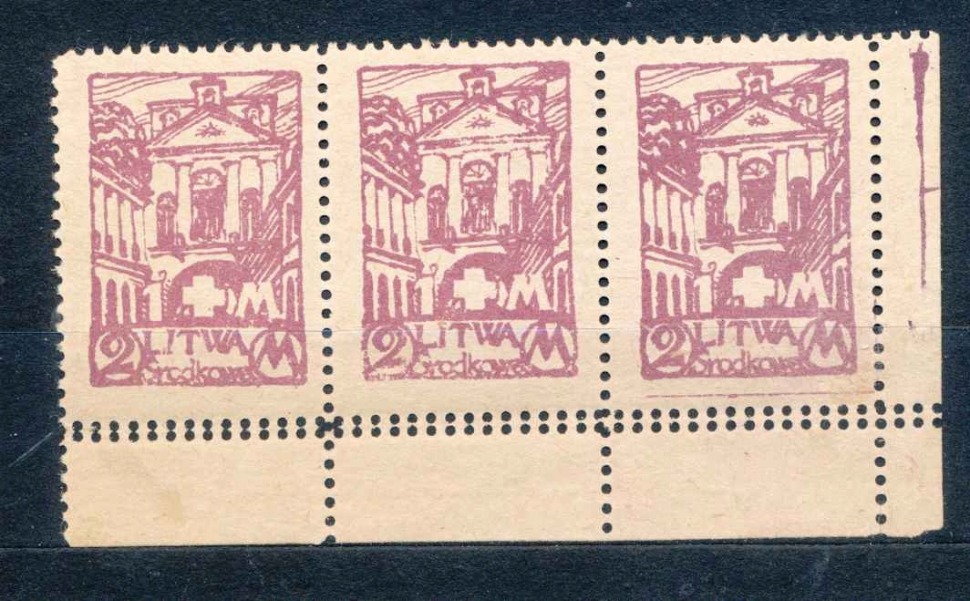 1921 г. ЦЕНТРАЛЬНАЯ ЛИТВА, издание с доплатой за ПОЛЬСКИЙ БЕЛЫЙ КРЕСТ, 2+1Мк. Fi.31aB, полоса горизонтальная, 3 марки с двойной горизонтальной перфорацией, чистая, без петель, в хорошем состоянии. Стоимость доставки 10 злотых. Приоритетное заказное письмо. ИНТЕРЕСНЫЙ И РЕДКИЙ МАТЕРИАЛ ДЛЯ СПЕЦИАЛИЗАЦИИ.