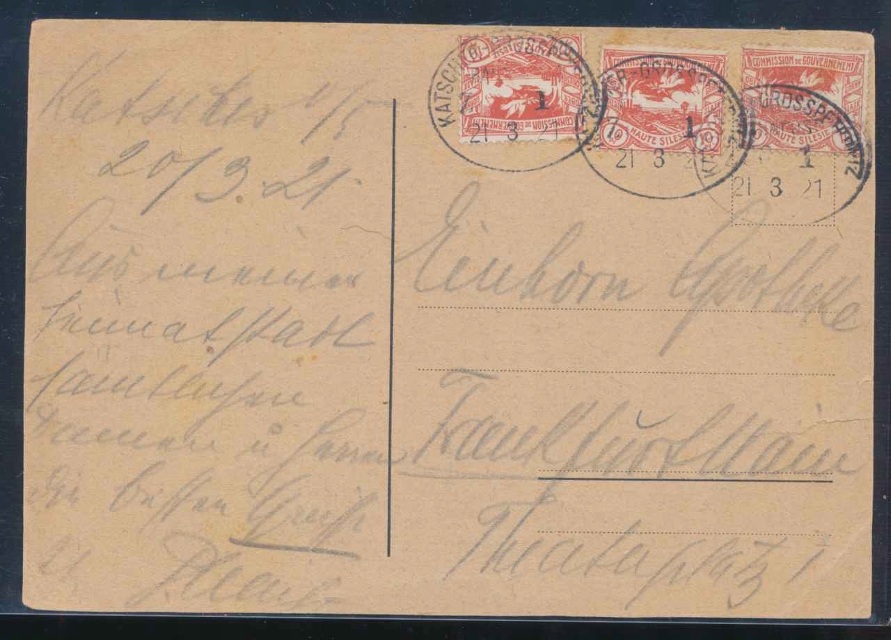 1920.3.21. Плебисцит в Верхней Силезии, очень редкая немецкая пропагандистская отложенность Abstimung oberschlesien gross-catscher wir stimm deutsch, транслируя с плебисцитовой железной дорогой машиной скорой помощи Катсшер-Гроспетервитц Банпост Зуг 1/Kietrz-Petrowice Wielkie в Германии. Карта Паддарда справа со стороны адреса на высоте 4 см. до глубины 2 см. Стоимость доставки PLN 10. Зарегистрированное письмо приоритет. h1> Регионалия, небольшая родина - Kietrz, Pietrowice Wielkie, Racibórz, Opolskie. Темы - плебисцит в Верхней Силезии. h1>