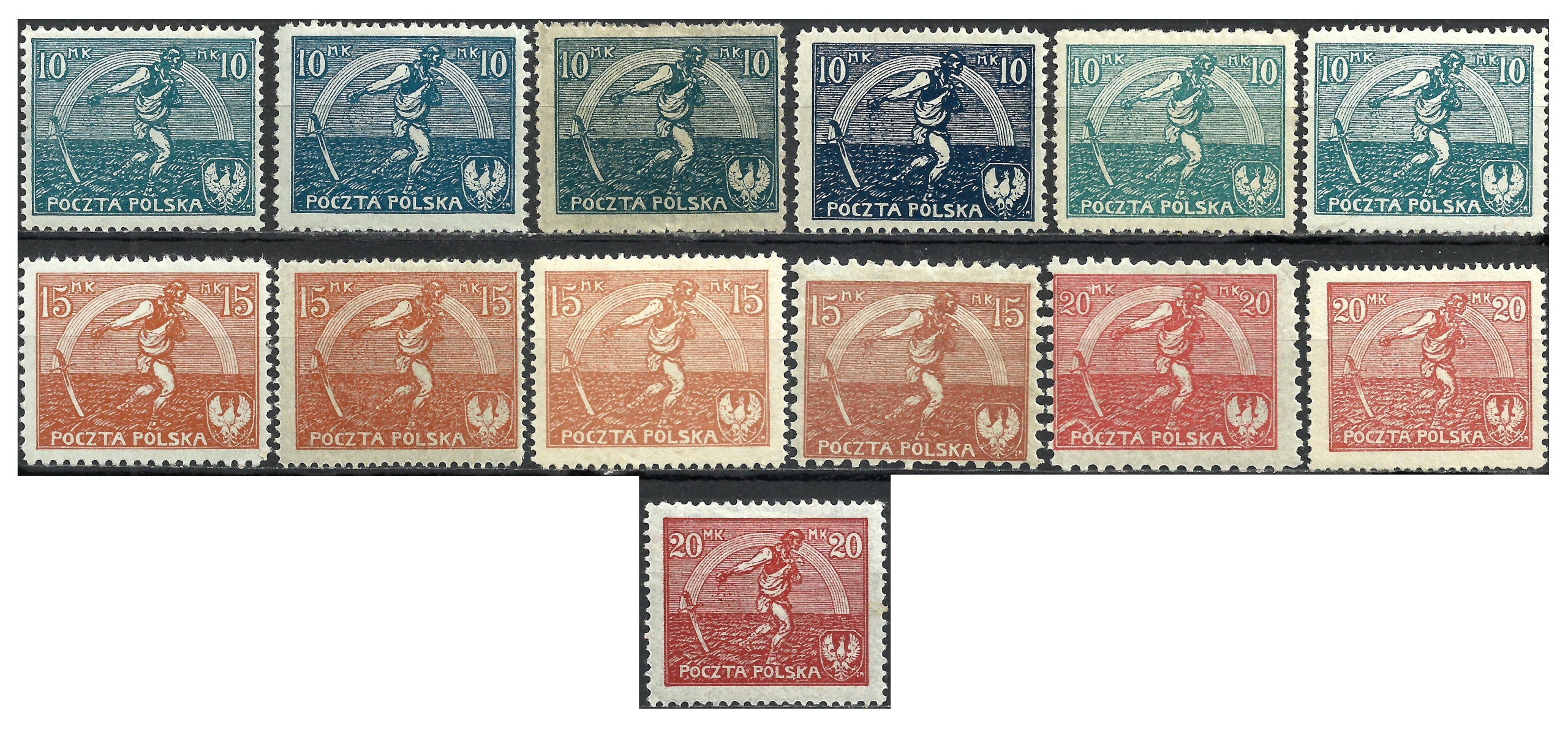 1921 Польша FI.125-127 * разновидности цветов, формы I, ii * чистое посев *