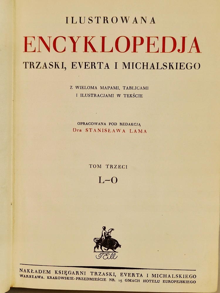 "Иллюстрированная энциклопедия, Эверта и Эверта Михальски - пяти -объемная, иллюстрированная, польская общая энциклопедия, которая была опубликована в 1926–1928 годах в период второй польской республики издателя Трзаска, Эверта и Михальски.иллюстрированный