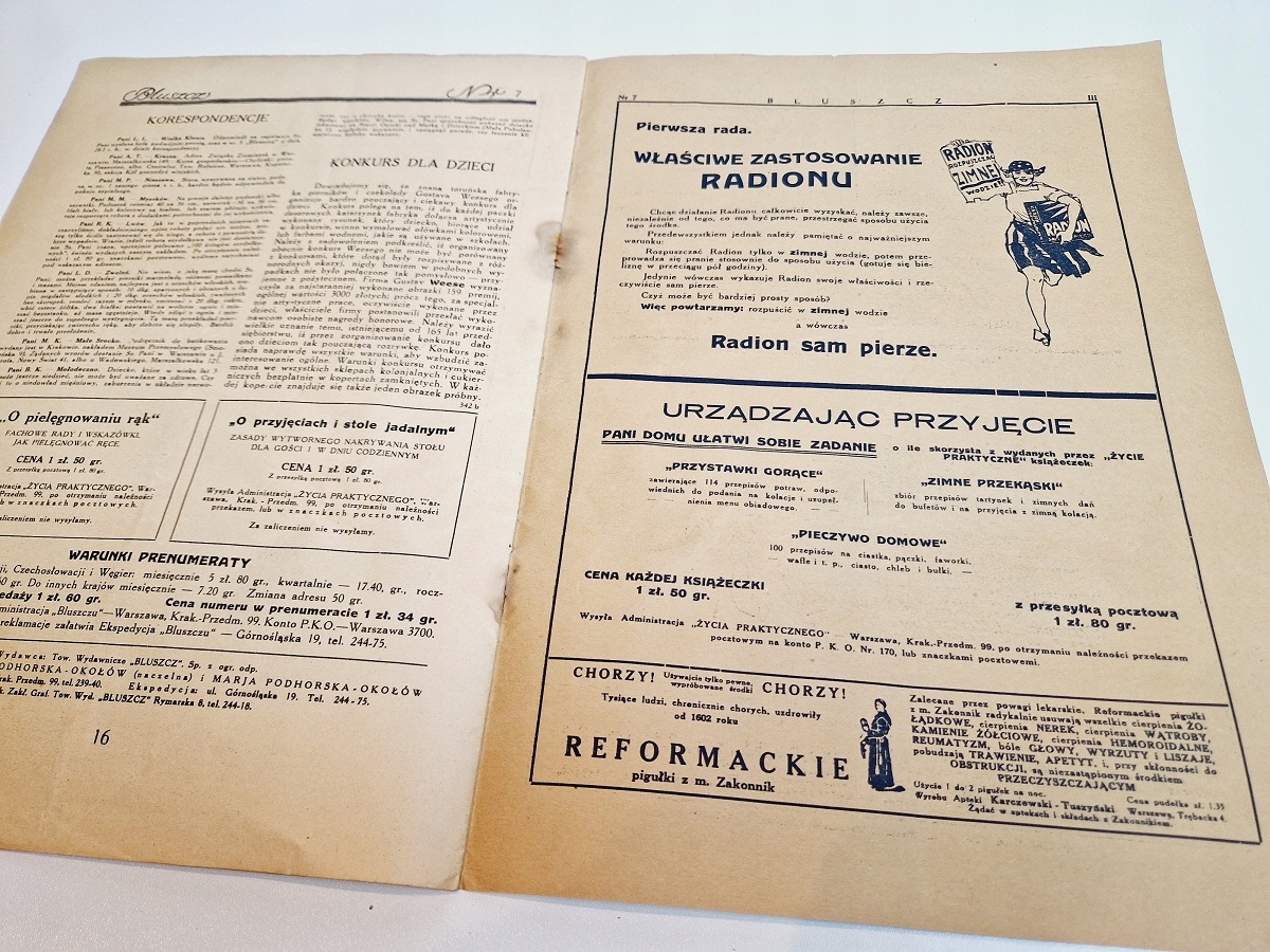1928 LXI NR7 SPOŁECZNO LITERACKI ILUSTROWANY TYGODNIK KOBIECY BLUSZCZ 00332