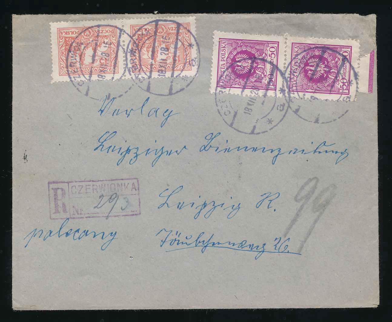 1928 ВЕРХНЯЯ СИЛЕЗИЯ, заказной конверт R-CZERWIONKA.