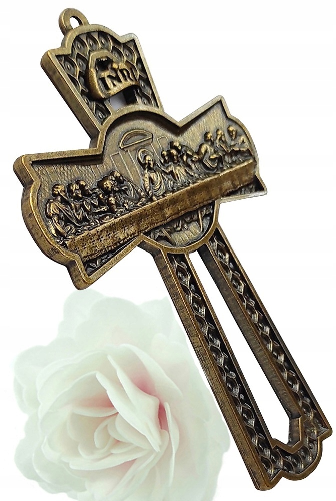 Красиво изготовленный металлический крест, висящий «Последний вечерний» в цвете, имитирующий старое золото - польский продукт h1>
