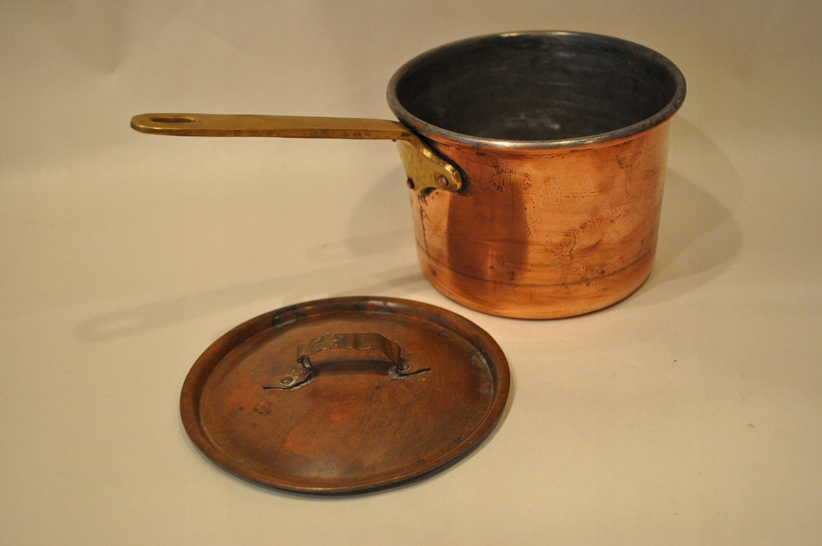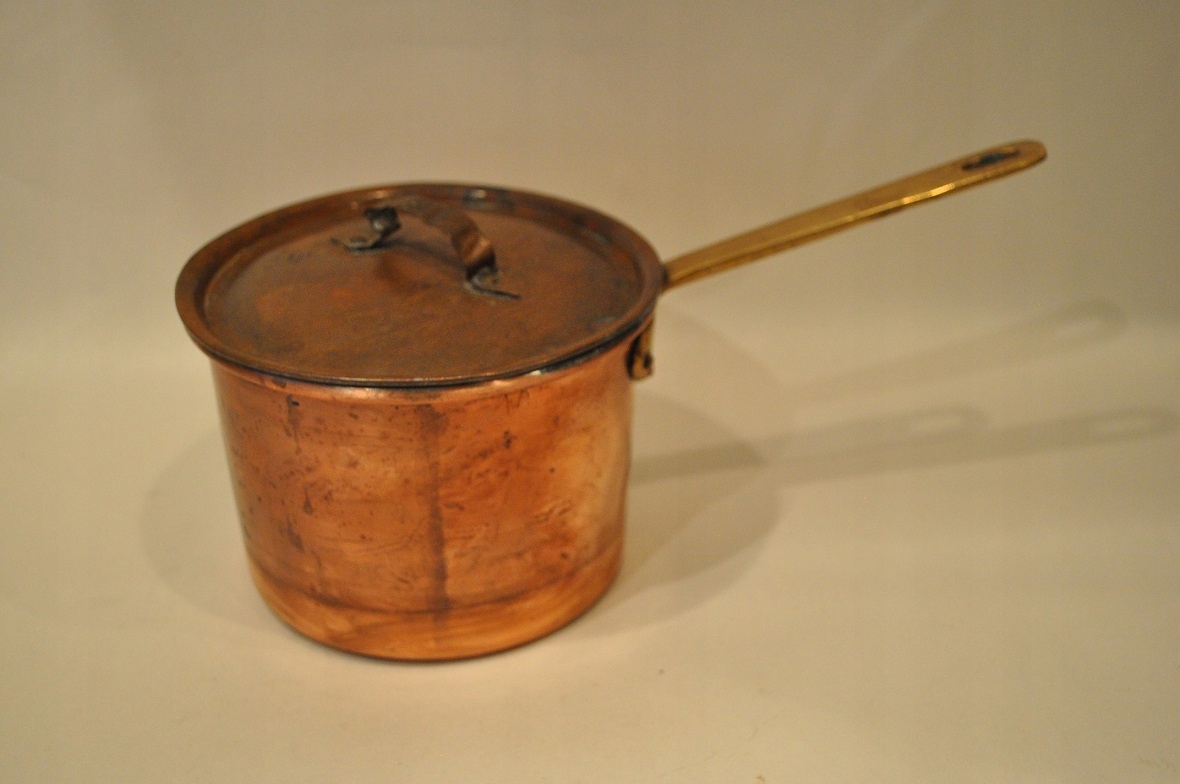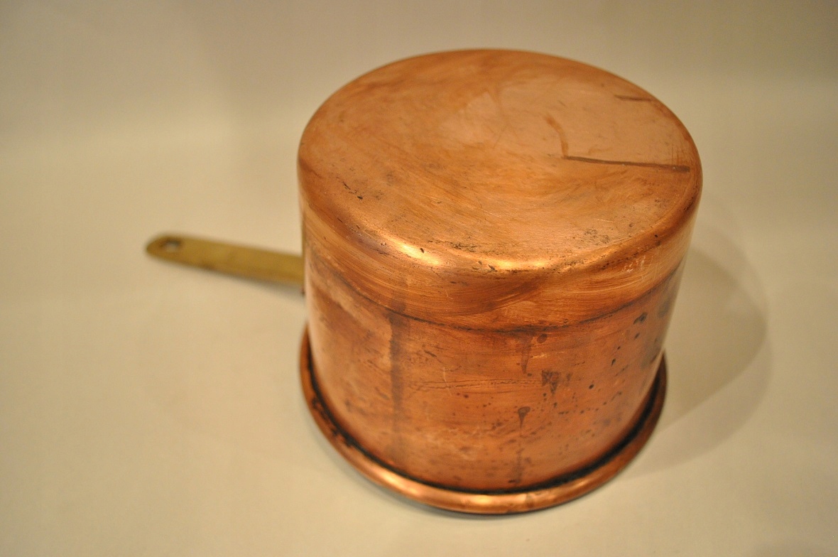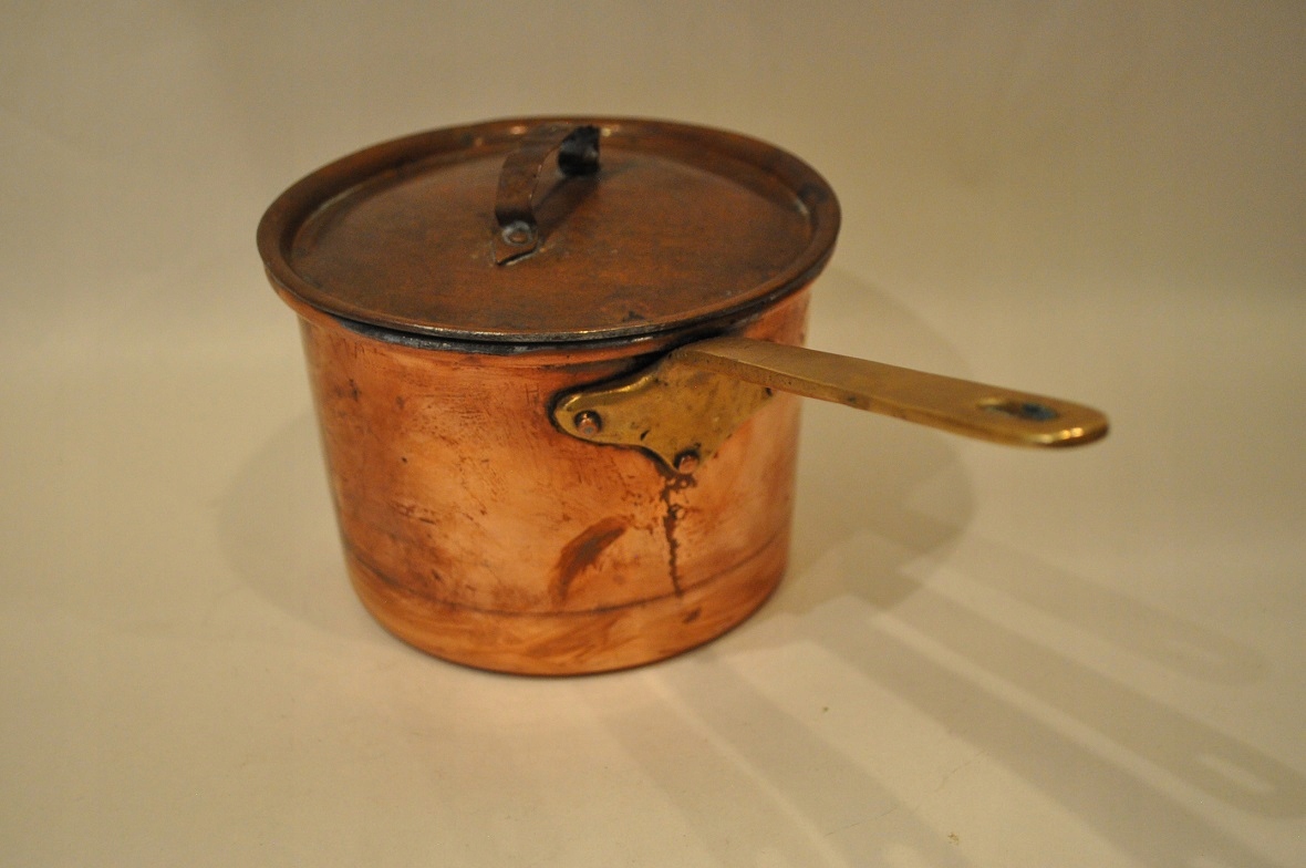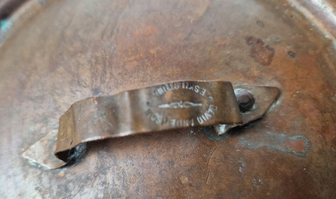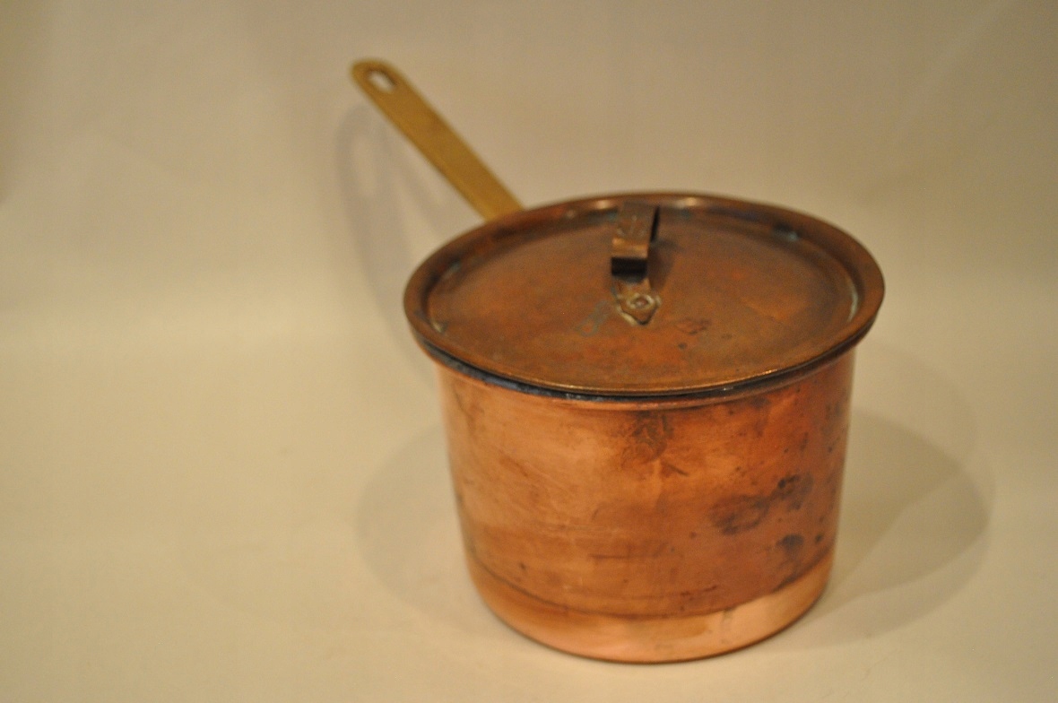 1930-1940-ті рр. 20 ст. / 1,0 л - МАЛИЙ ПІДПИСАНИЙ МІДНИЙ ГОРНИК З КРИШКОЮ /105