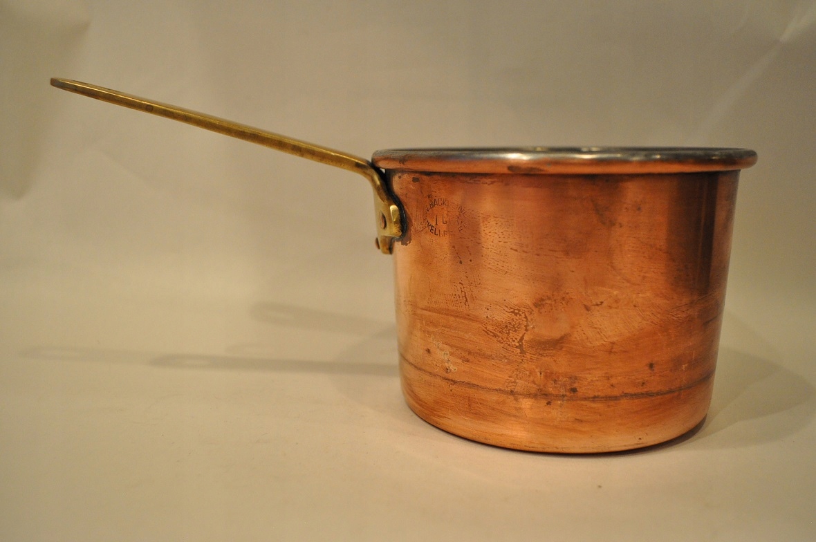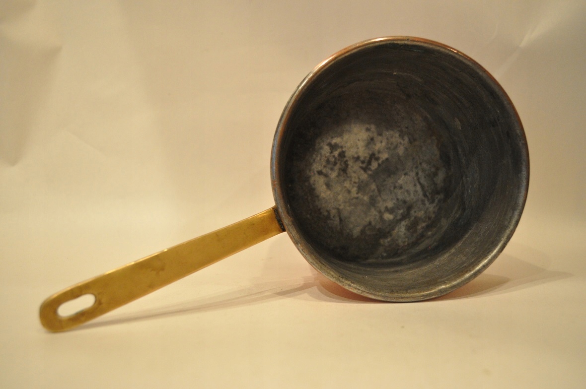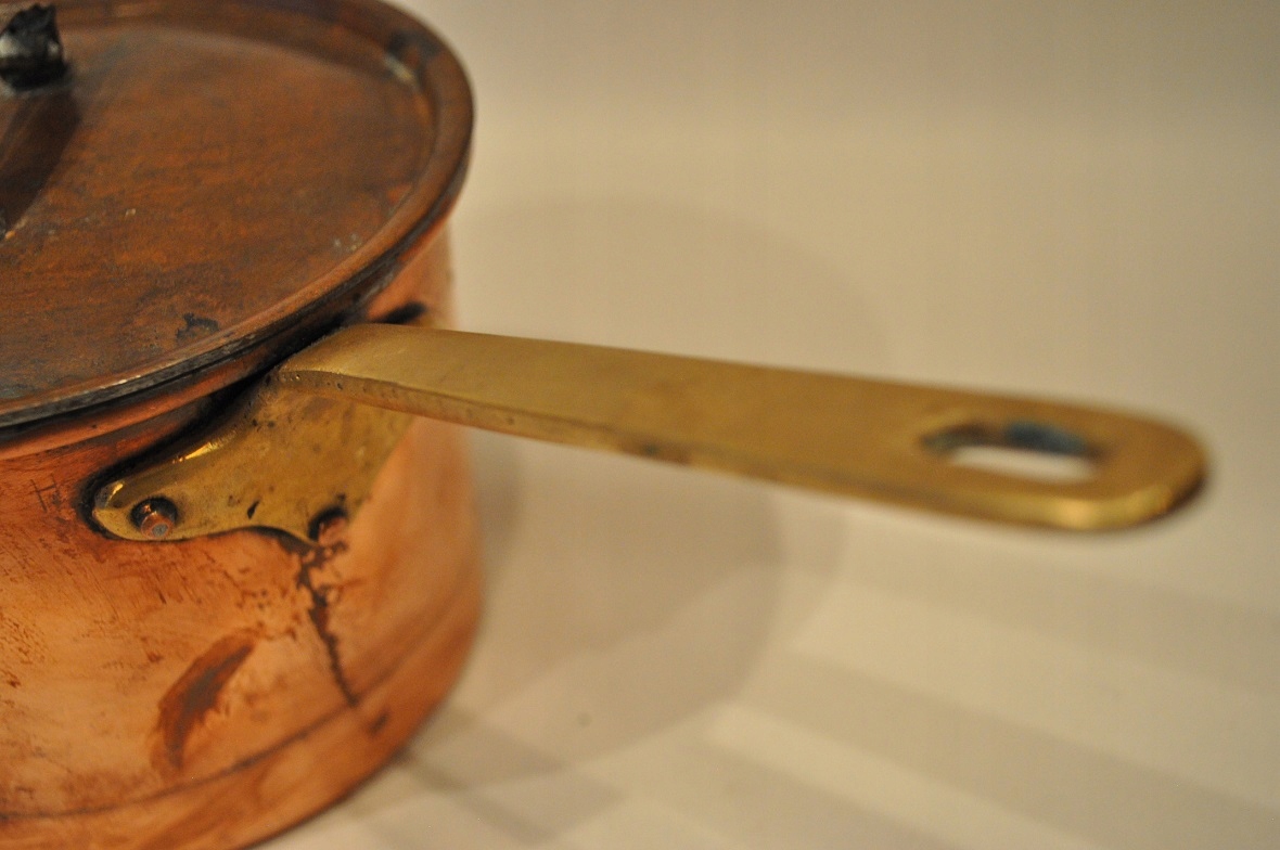 Массивная ручка кастрюли, латунь, заклепана медью - в очень хорошем состоянии.