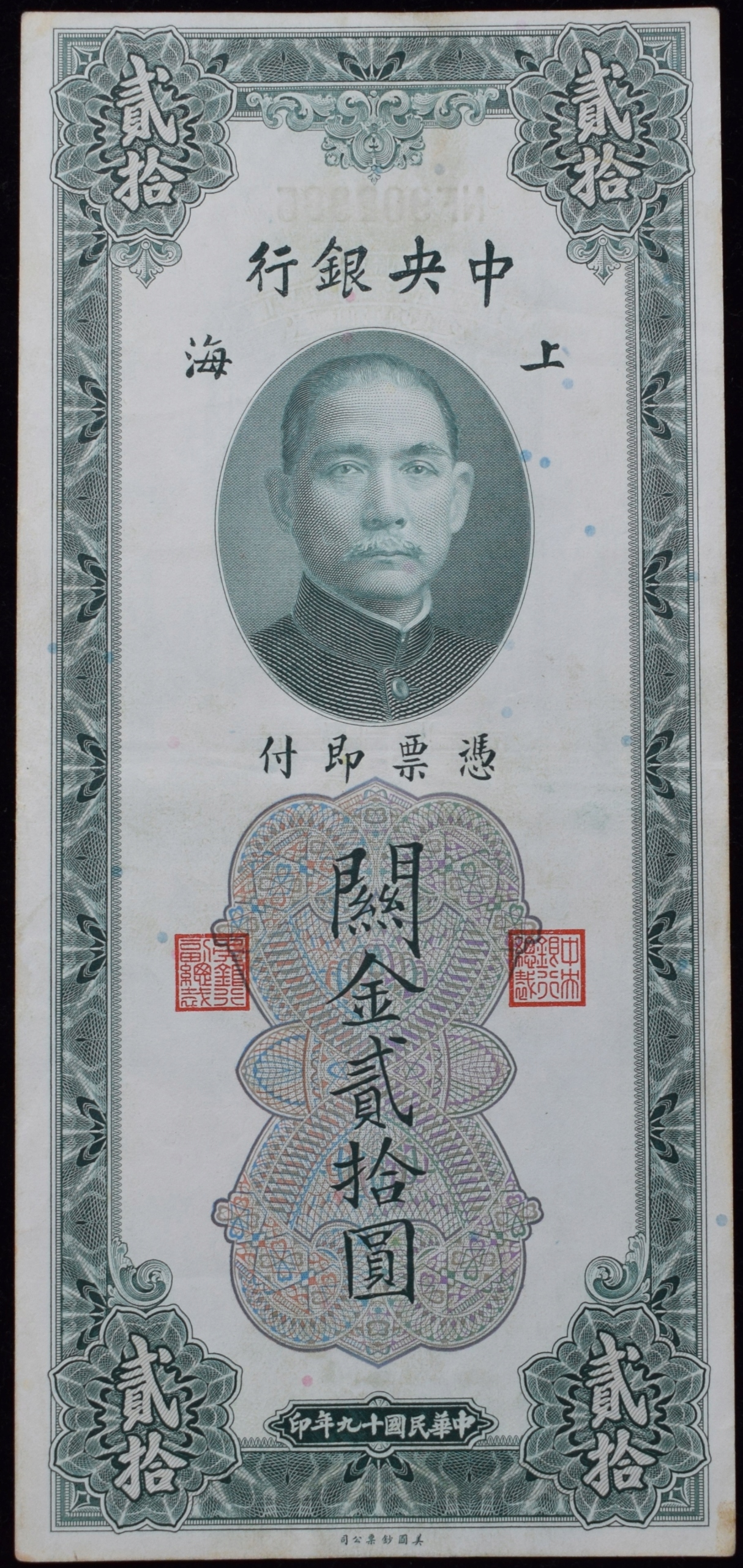 1930 Китай 20 золотих - 20 митних золотих одиниць
