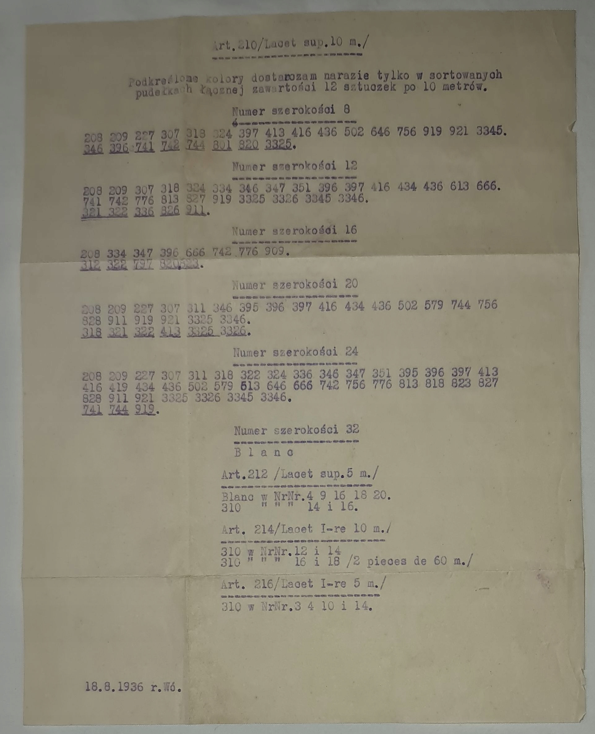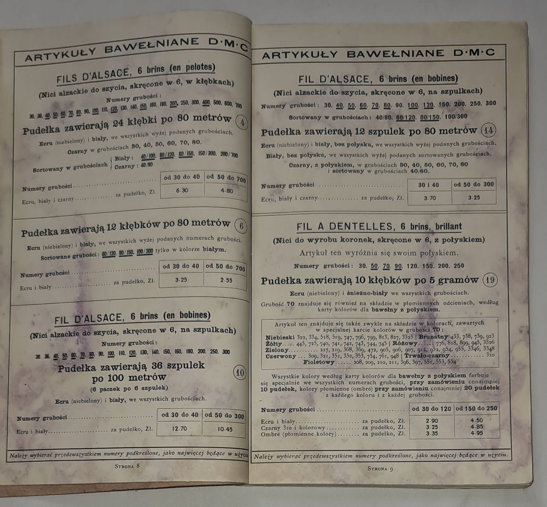 1932 Dollfus-Mieg D-M-C Прайский список хлопковых статей Sedwab Warsaw