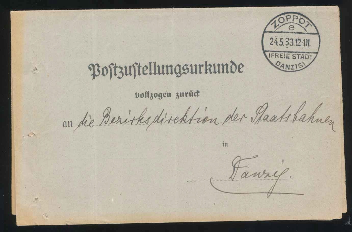 1933 WMG, документ Zoppot Freie Stadt Danzig.