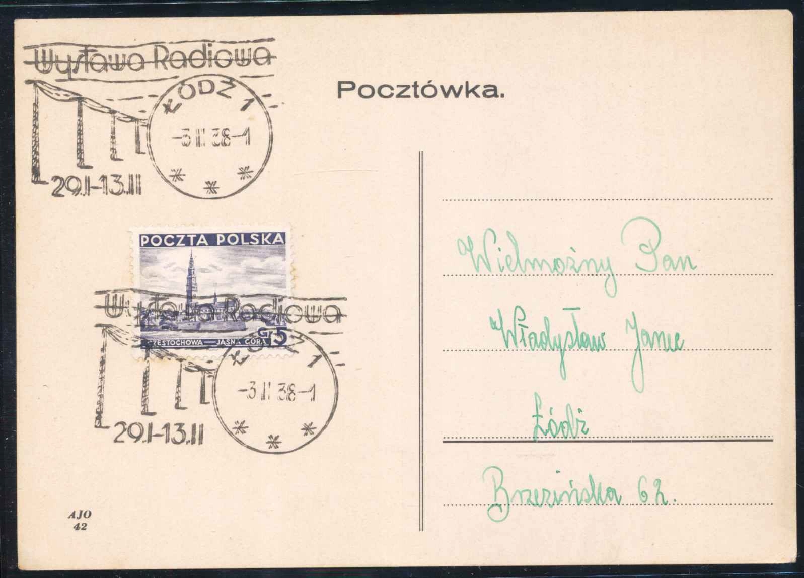1938 ПМВ, карточка РАДИОВЫСТАВКА Лодзь 1.