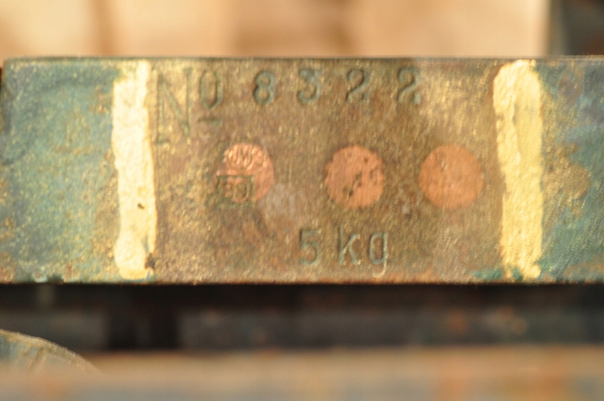 Юридические подписи на основном плече весов - медные проверочные вставки: