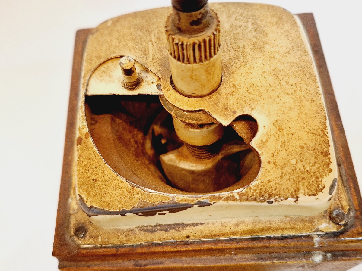 Крышка помольной камеры с потертостями в краске на изгибах, покрыта старым покрытием (нужно почистить).