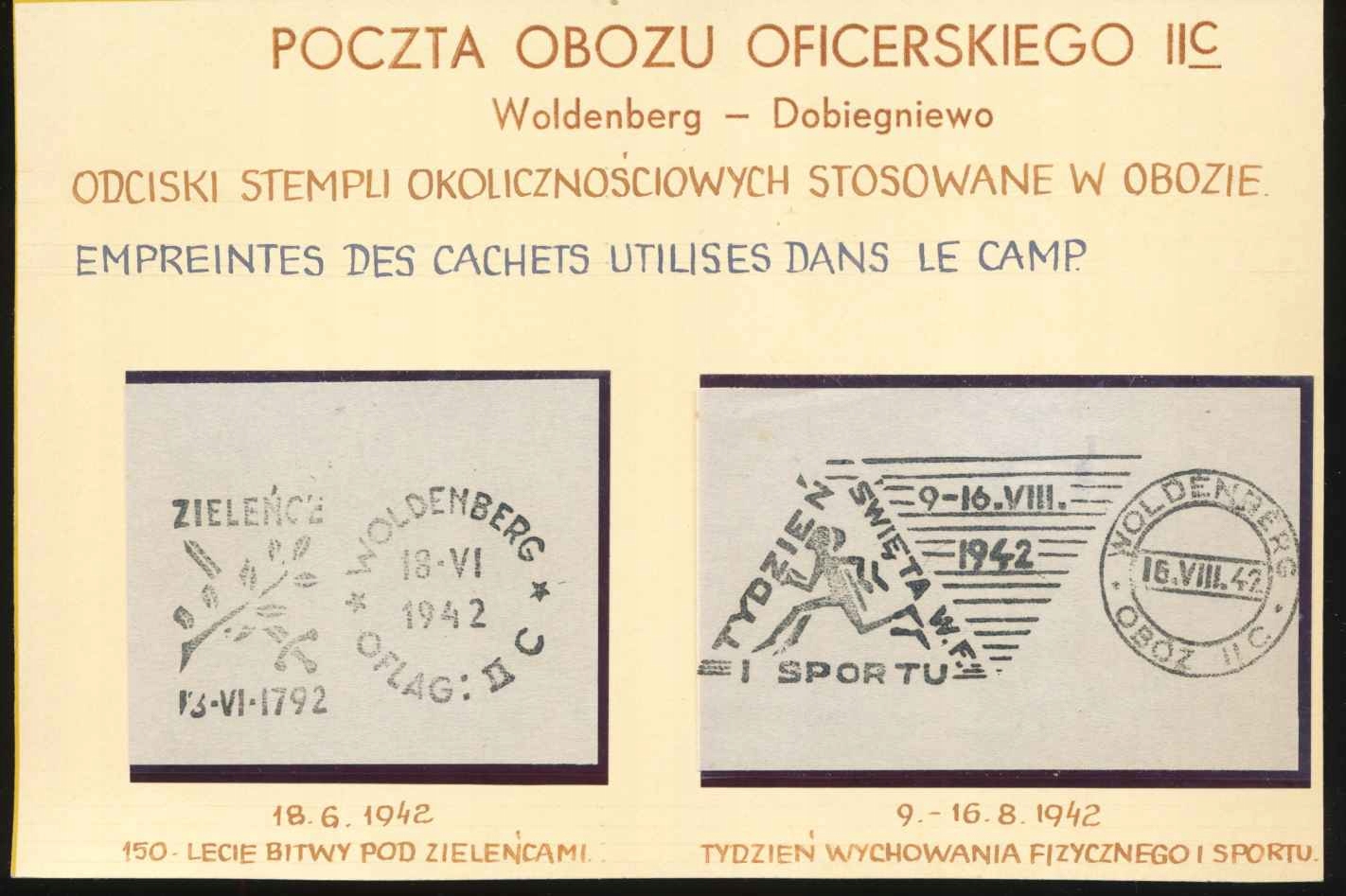 1942 Второй мировой войны, офицерский лагерь Poviat, Oflaf II C Woldenberg, 2 образцовые отпечатки случайных почтовых марков, 100% оригинал. Существенная ссылка и сравнительный материал. Стоимость зарегистрированного приоритета отправки, пл. 10. Темы-спорт, лагеря для военнопленных, Oflag II Woldenberg/Dobiegniew.