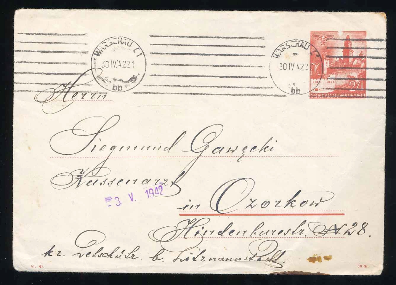 1942 Вторая мировая война, немецкая оккупация, генерал -губернатор, полный 30gr. Учитывая Warschau C1/Warsaw в Ozorków. Состояние, как на сканировании. Стоимость доставки PLN 10. Приоритетное зарегистрированное письмо. Регионалия, небольшая родина- Варшава, Оконкор.