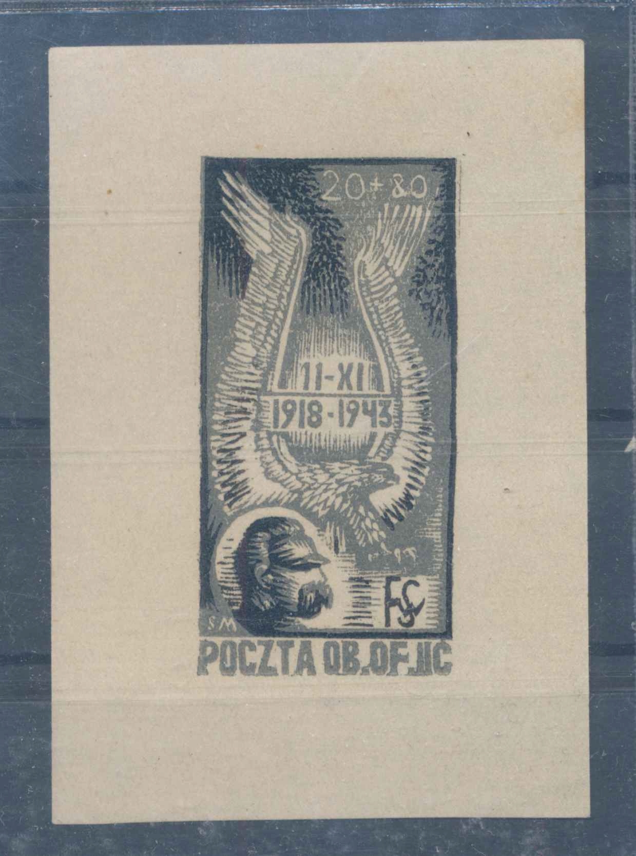 1943 WWII WWID, Camp Oflag II C Woldenberg, Józef Pi Lsudki, 20+80f. ДИЗАЙН.