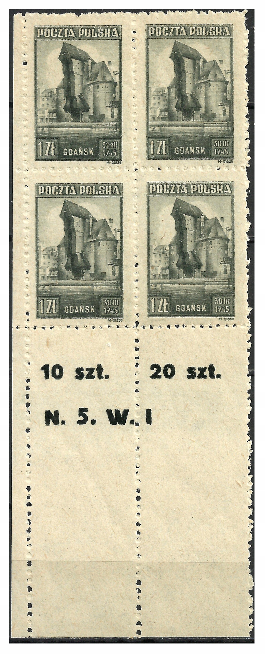 1945 Польша FI.377C ** Четыре маржинальных памятника Gdańsk GW. J.Walocha Pzf