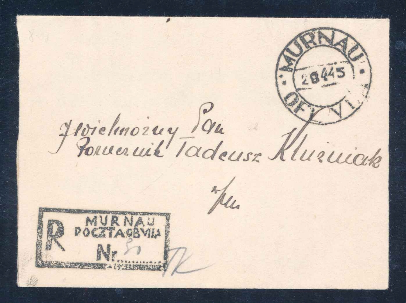 1945.4.28. ВТОРАЯ МИРОВАЯ ВОЙНА, НЕМЕЦКИЙ ЛАГЕРЬ ДЛЯ ВОЕННОПЛЕННЫХ ДЛЯ ОФИЦЕРОВ, ОФЛАГ VII A МУРНАУ, заказной конверт ПОЧТОВОЕ ОТДЕЛЕНИЕ Р-МУРНАУ VII A, внутренняя информация - ПОЗДРАВЛЯЕМ С ПЕРВЫМ ДНЕМ СВОБОДЫ! ! ! . Стоимость доставки 10 злотых. Приоритетное заказное письмо.