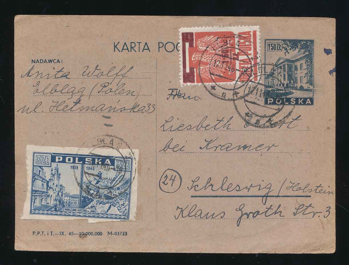 1946 PL, ПРЕДВАРИТЕЛЬНЫЙ, добавлен полный франк ЭЛБЛГ - предварительная марка. Стоимость доставки 10 злотых. Приоритетное заказное письмо. РЕГИОНАЛЫ, МАЛАЯ РОДИНА - ЭЛБЛГ.
