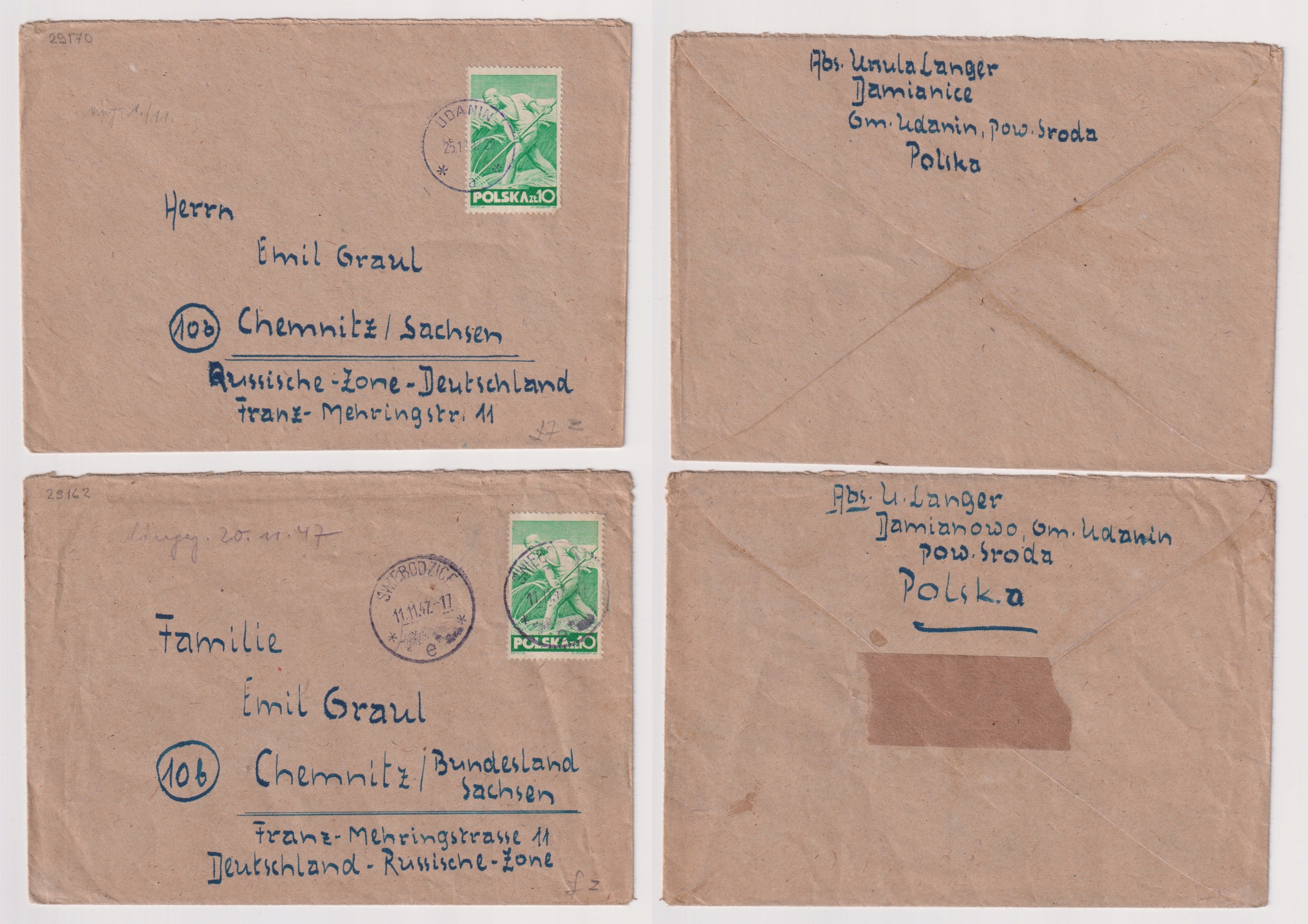 1947 Fi 438, два письма из городов Уданин и Свебодзице.