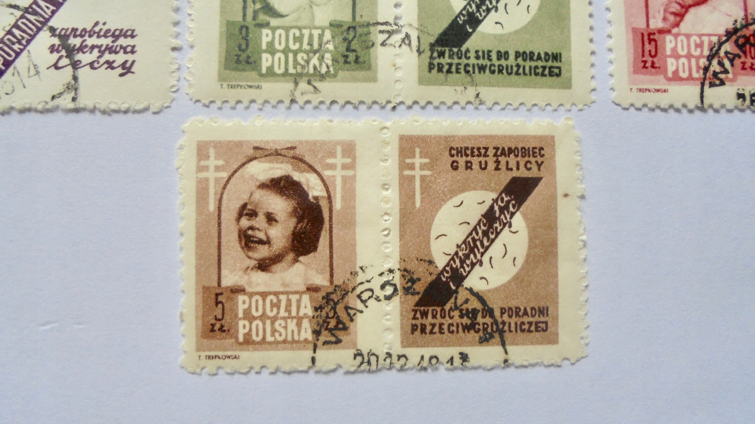 1948 ПОЛЬША БОРЬБА С ТУБЕРКУЛЕЗОМ красивый НАБОР пустых гашенных марок**/*