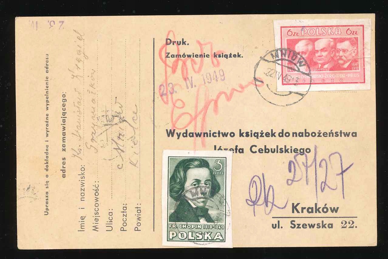 1949 г. świętokrzyskie, импровизированная карта Mniów-Provisional. Стоимость доставки PLN 10. Приоритетное зарегистрированное письмо. Регионалия, небольшая родина - Mniów, Kielce, świętokrzyskie. h1>