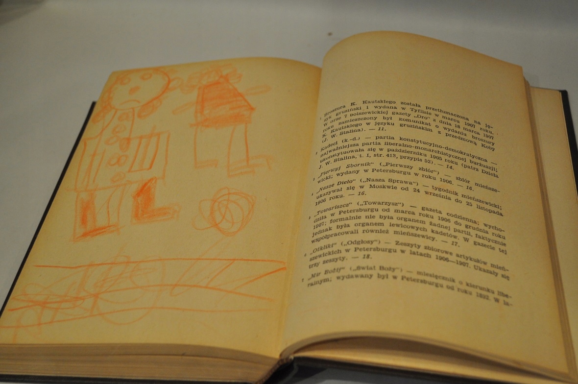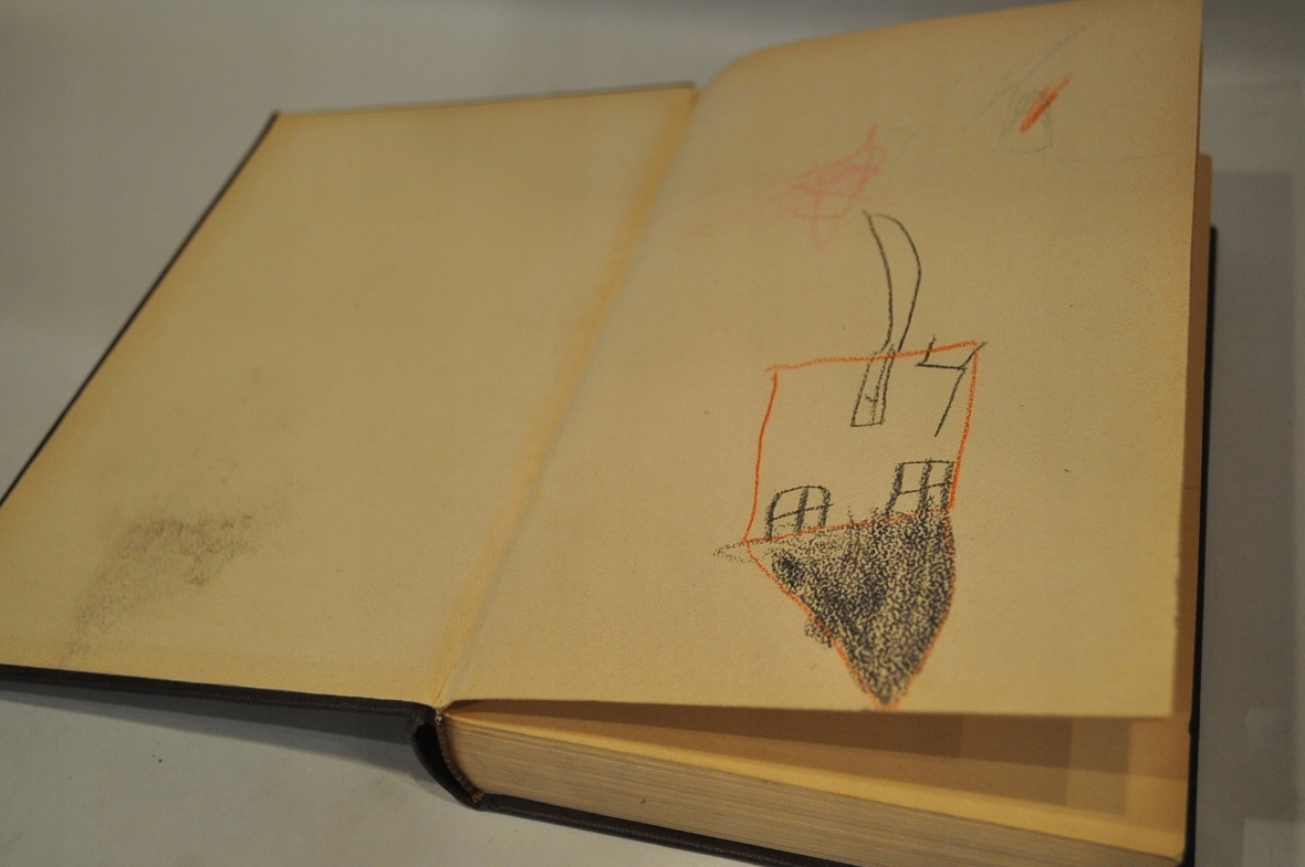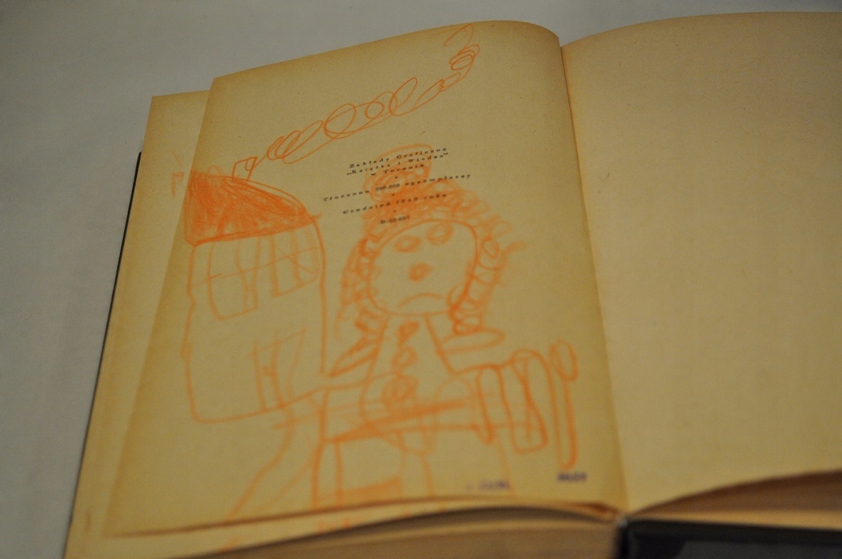 "Каракули" карандашом на форзацах, на предтитульном листе и изредка на страницах блока.