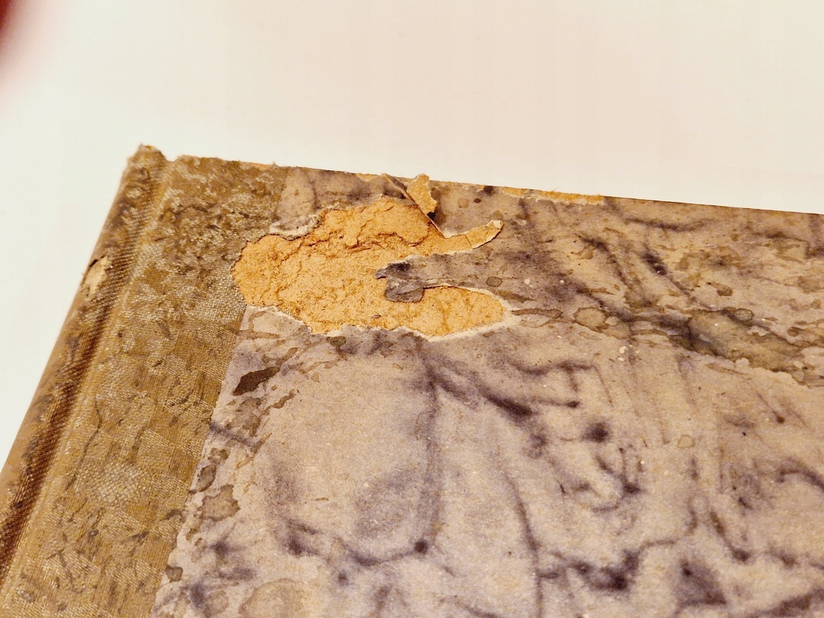 Полутканевый переплет, преимущественно с небольшими потертостями. по краям и углам и разрушения в верхней части лица (см. фото).