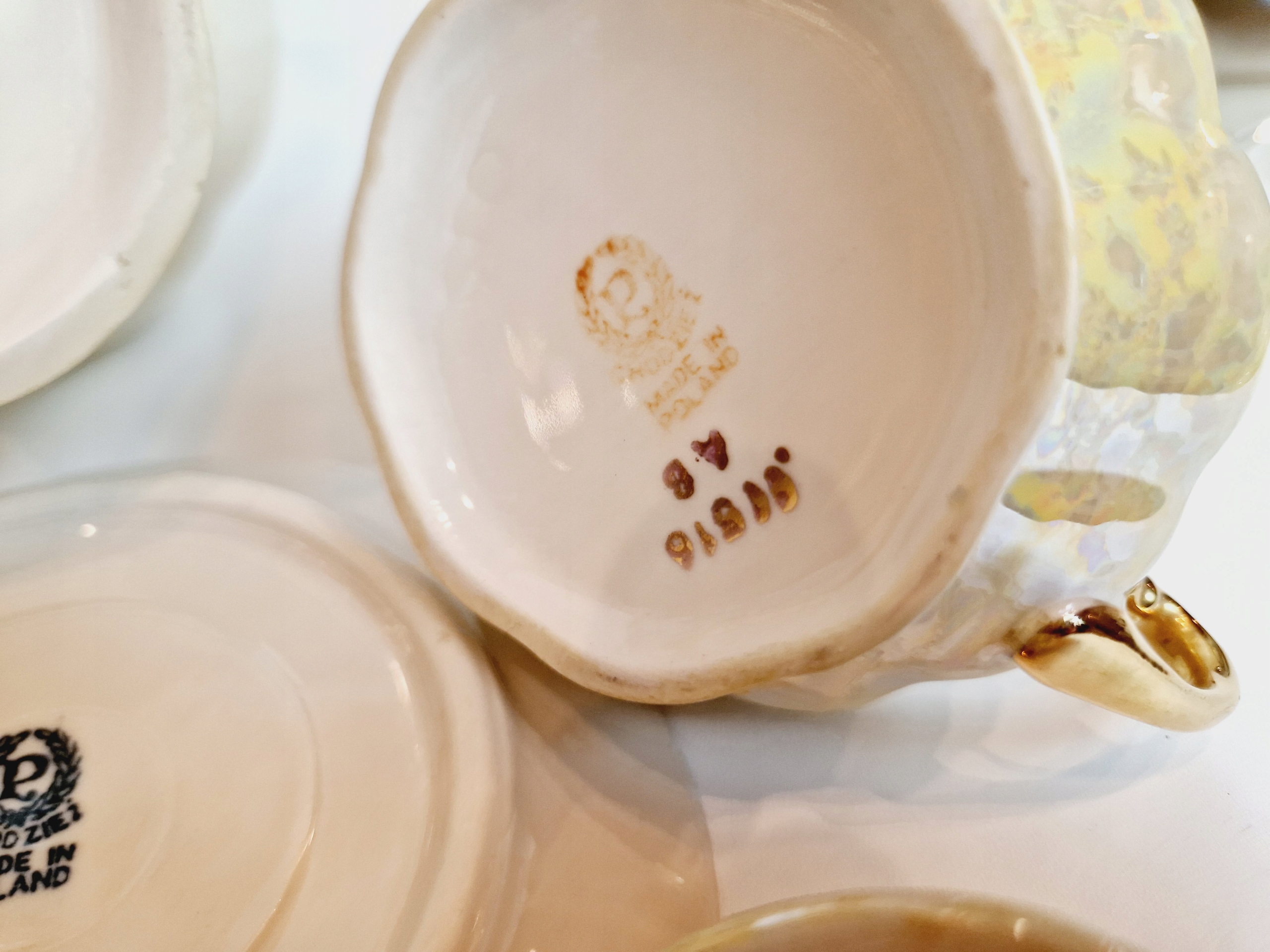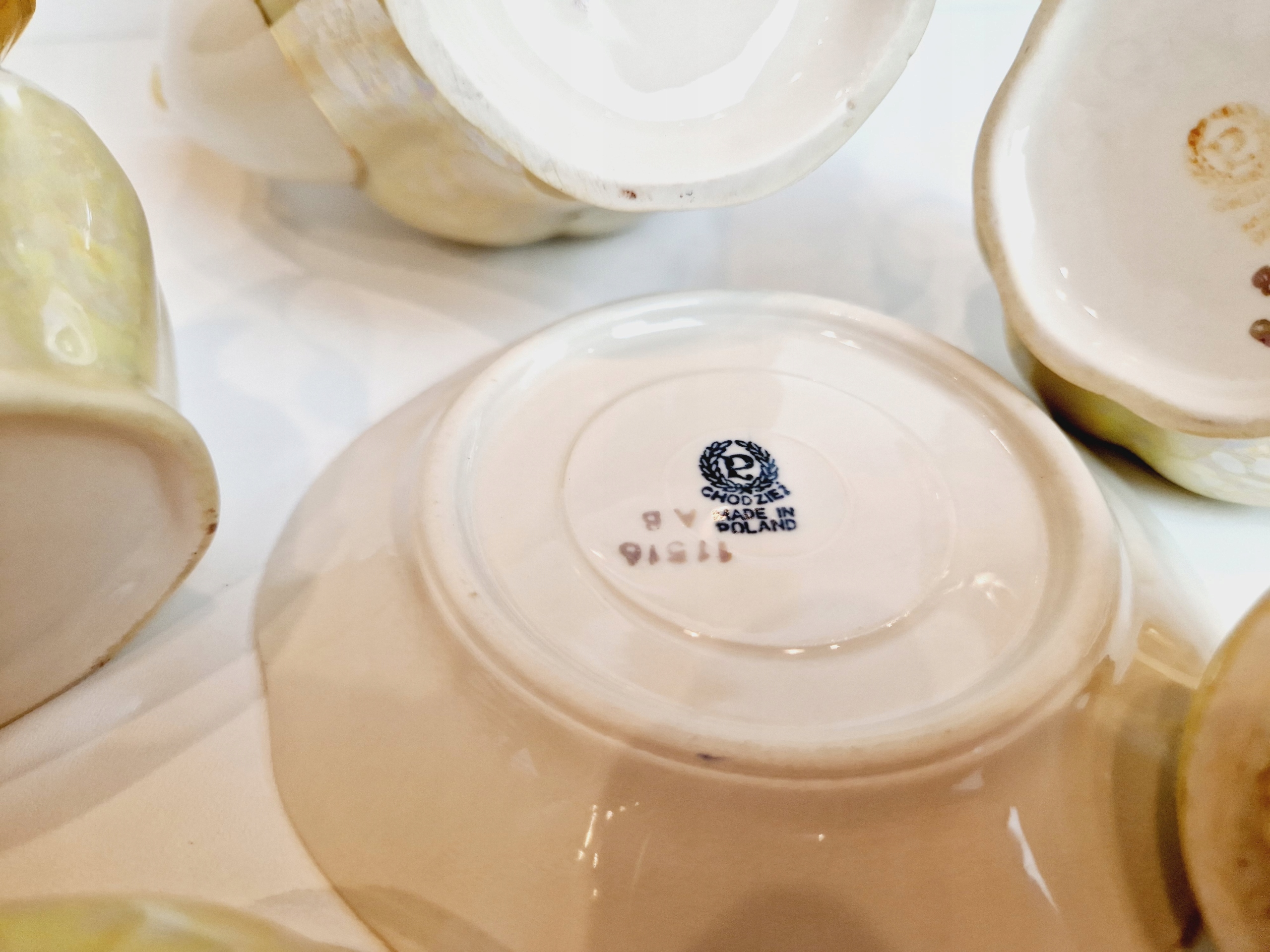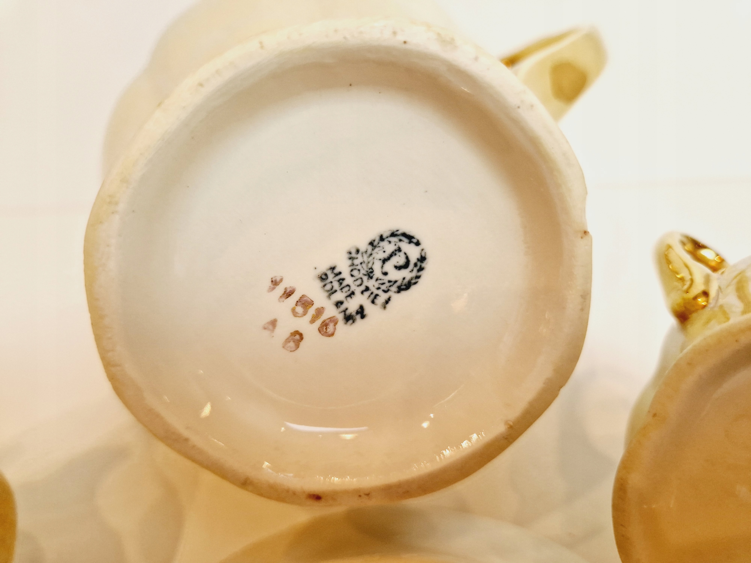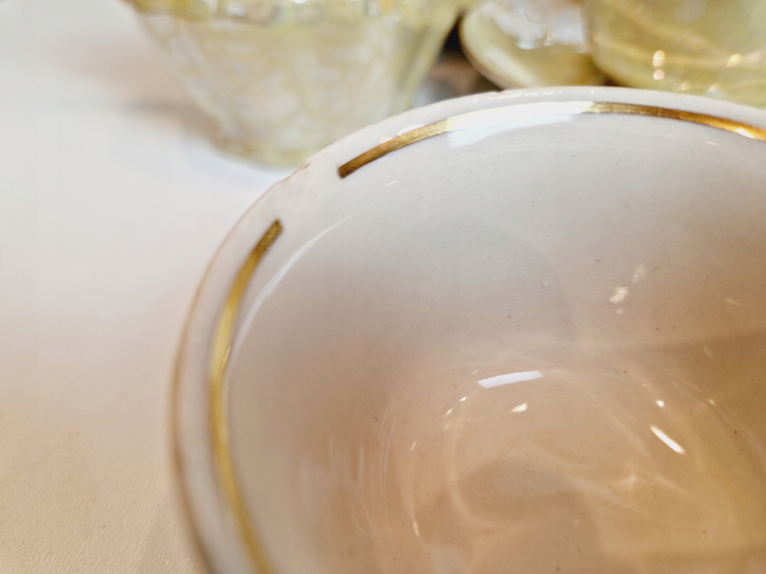 Небольшие сколы фарфора на краю одной из чашек от чашек.