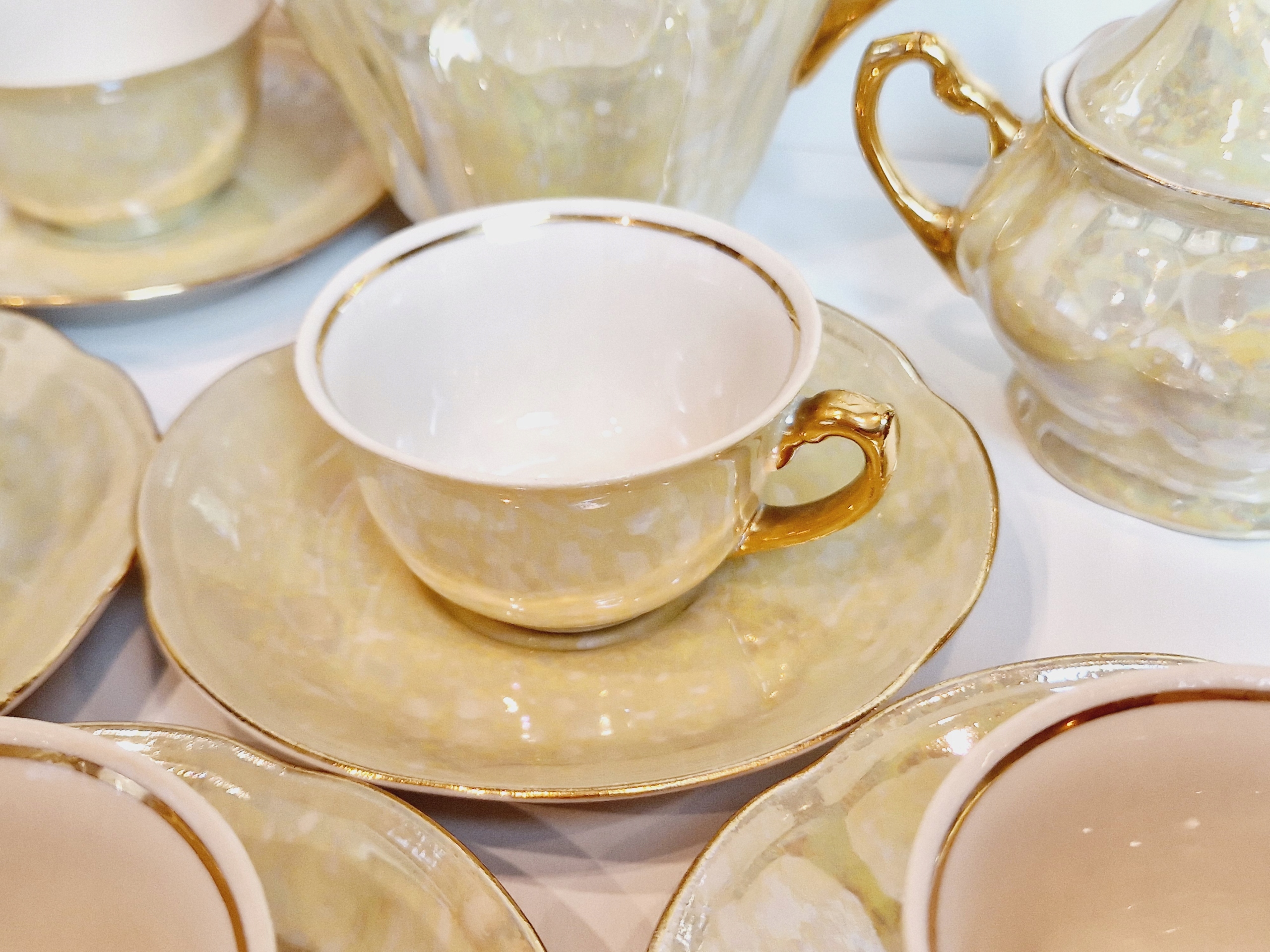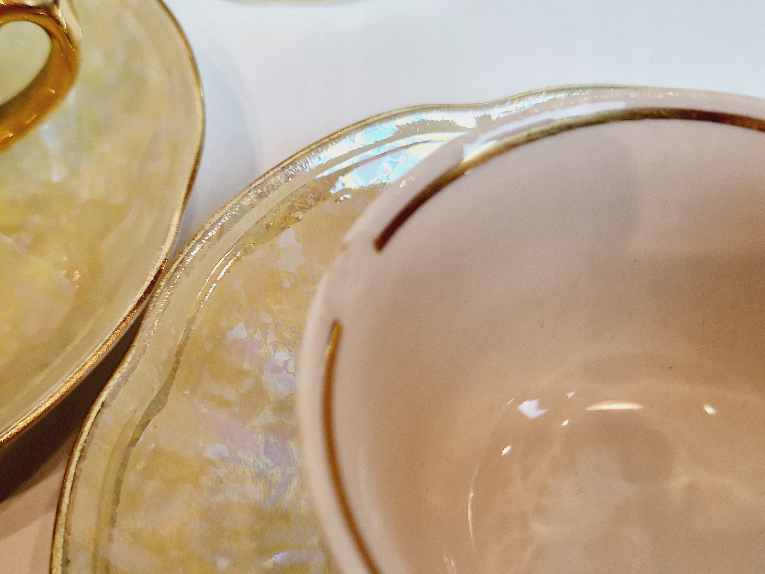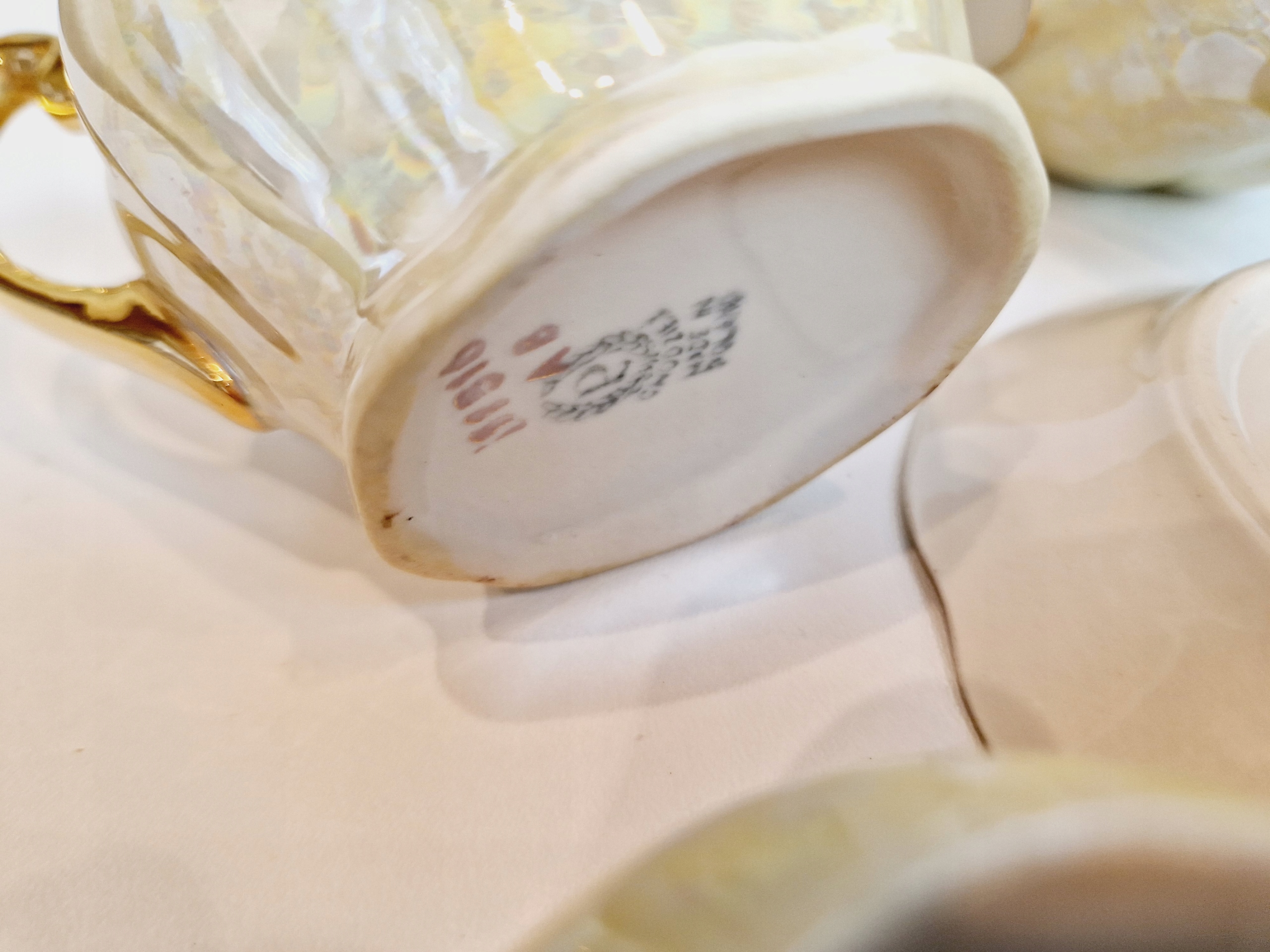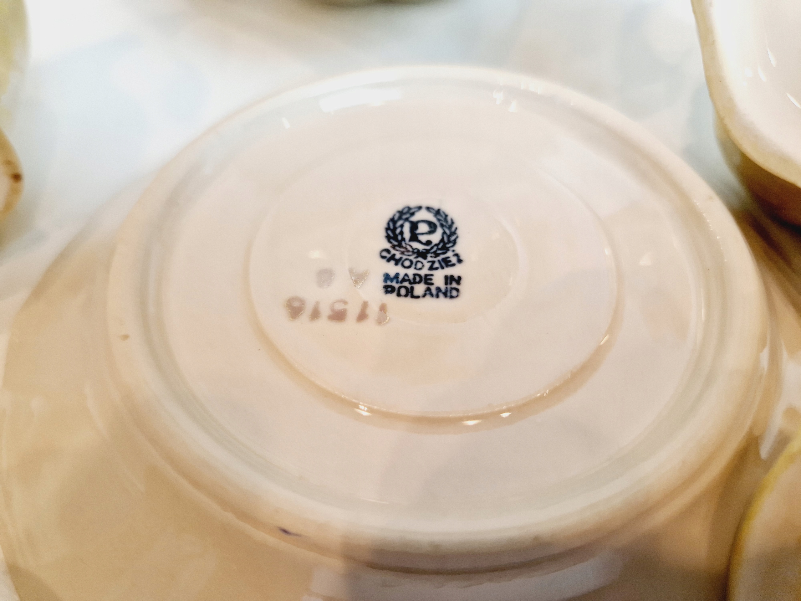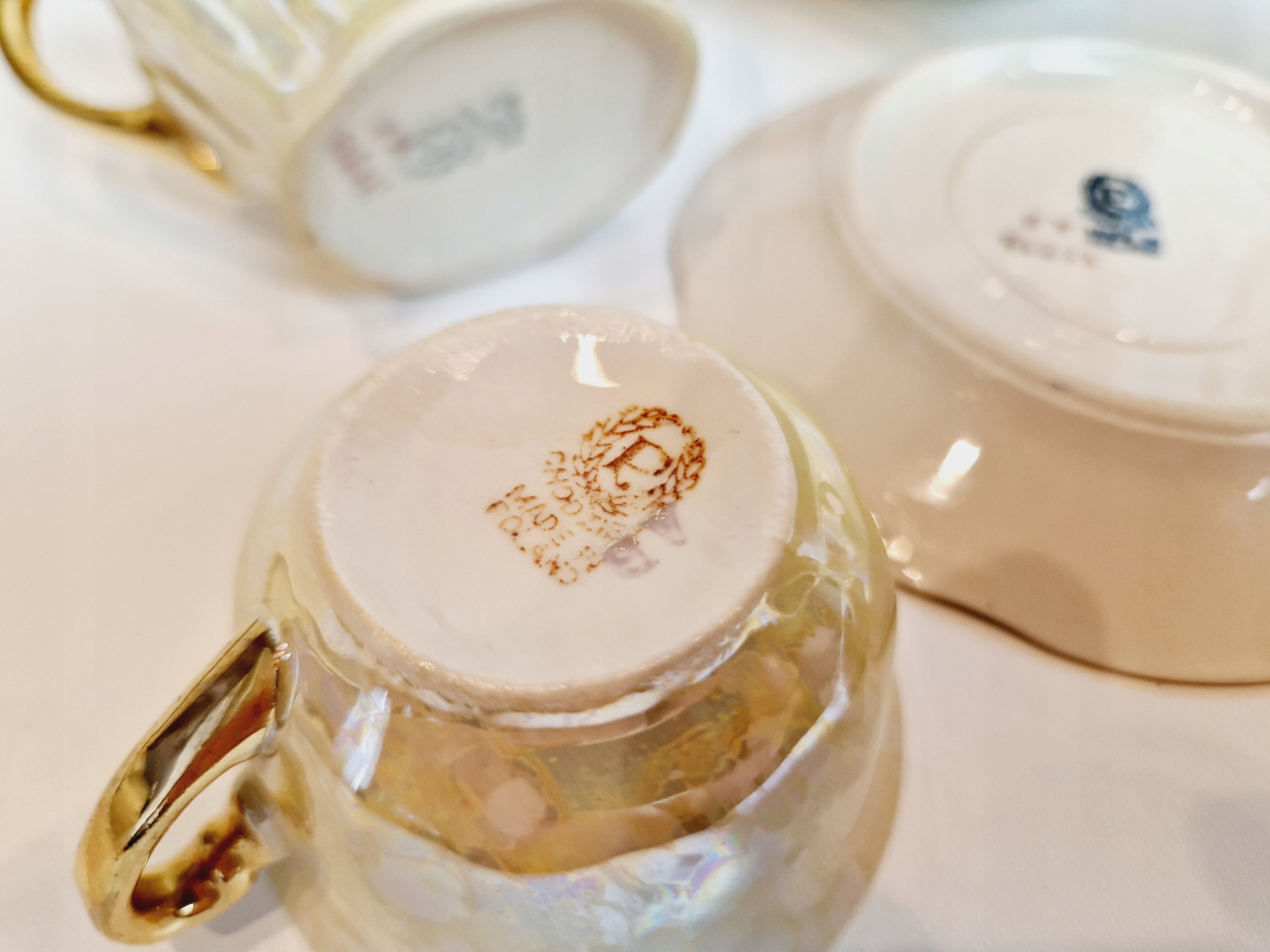 Небольшие сколы фарфора на краю одной из чашек от чашек.