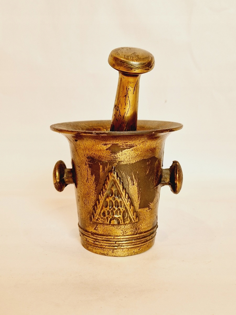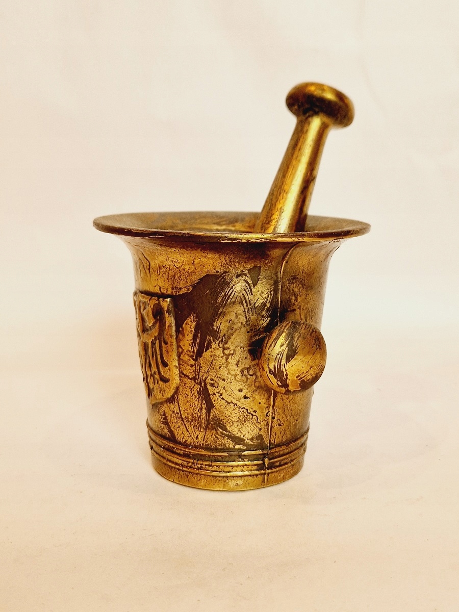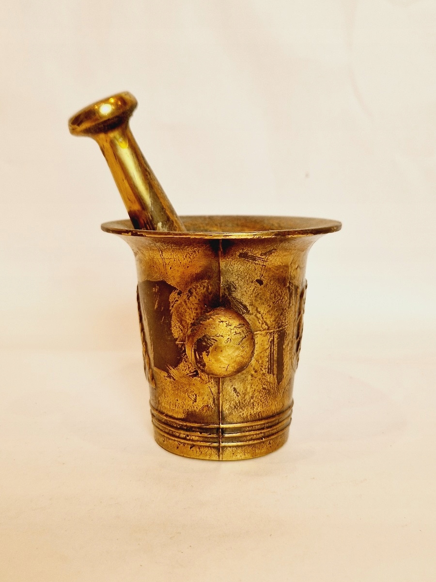 Ступка и пестик не чистились - патинировались (искусственно).