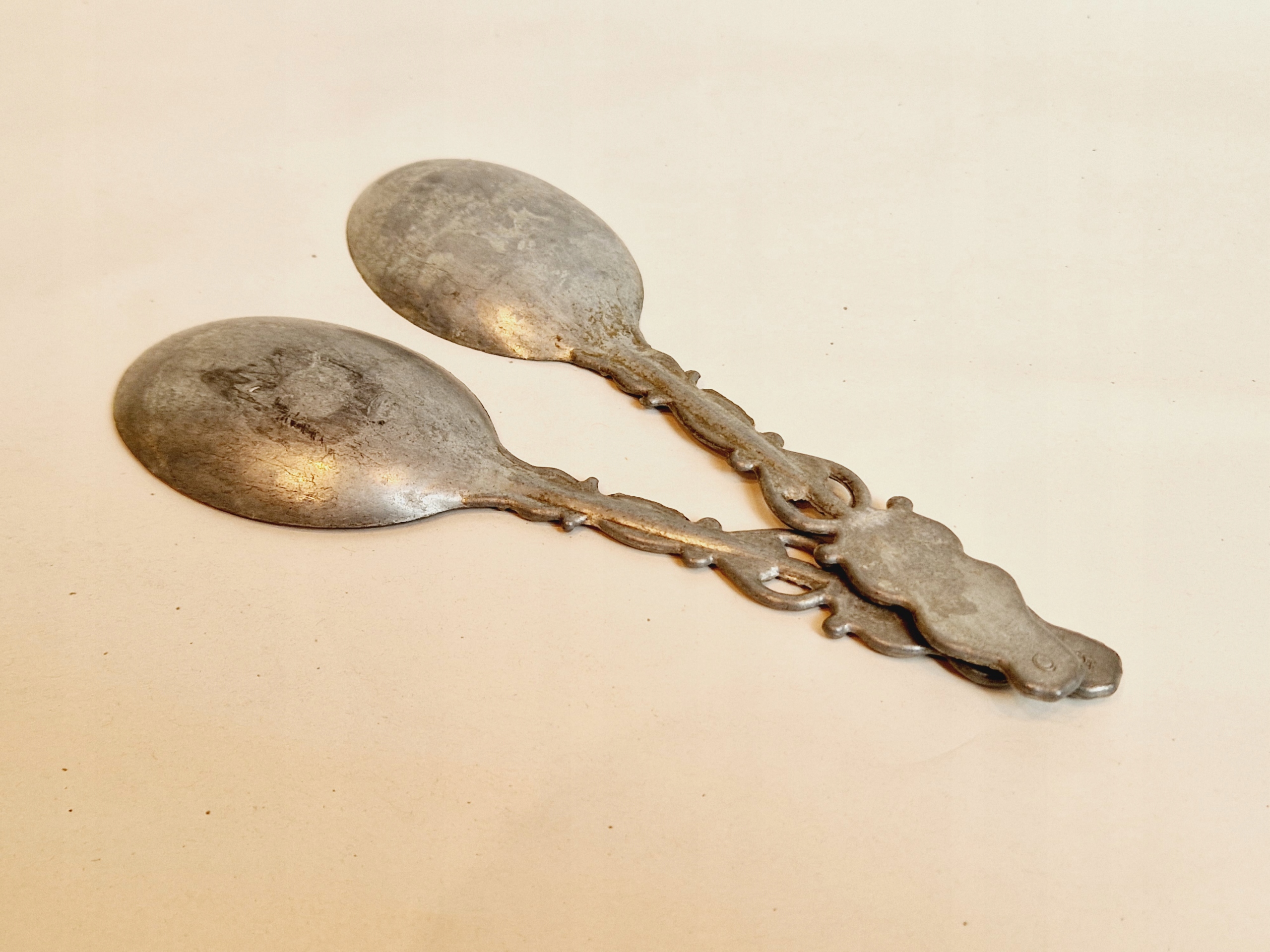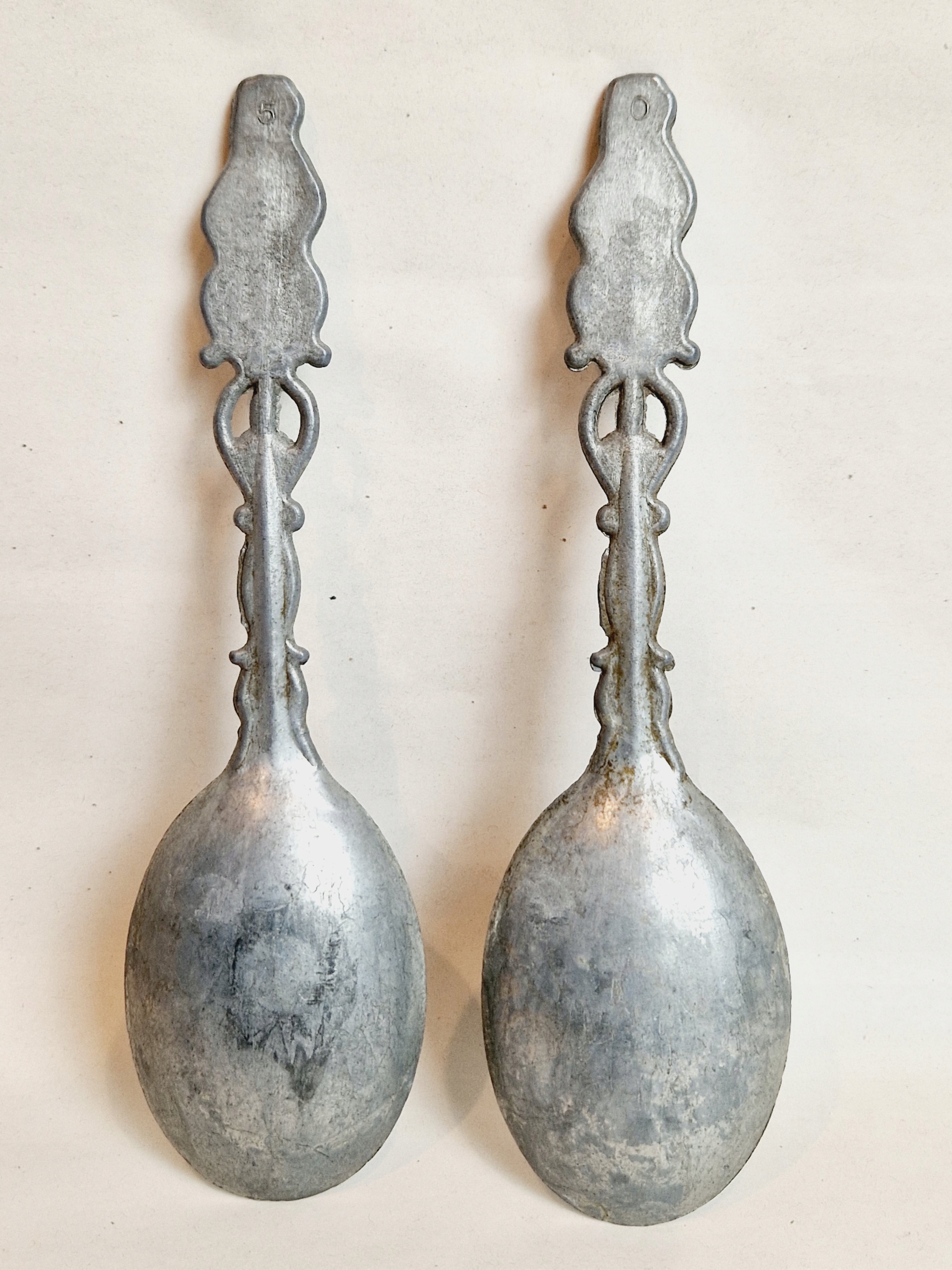 1960-ті 20 століття / 2 шт - СТАРИ КОЛЕКЦІЙНІ ДЕКОРАТИВНІ ЦИНКОВІ ЛОЖКИ /6573