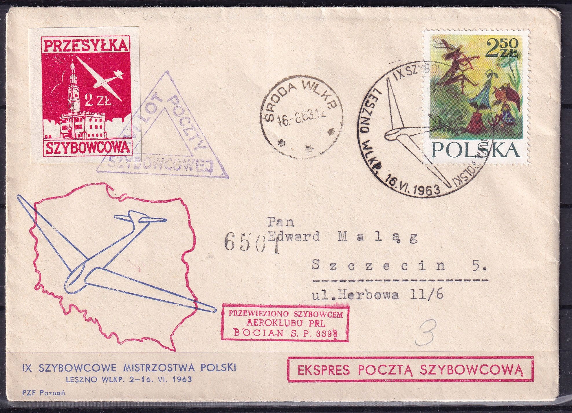 1963 poczta szybowcowa Leszno Wlkp szybowiec Bocian