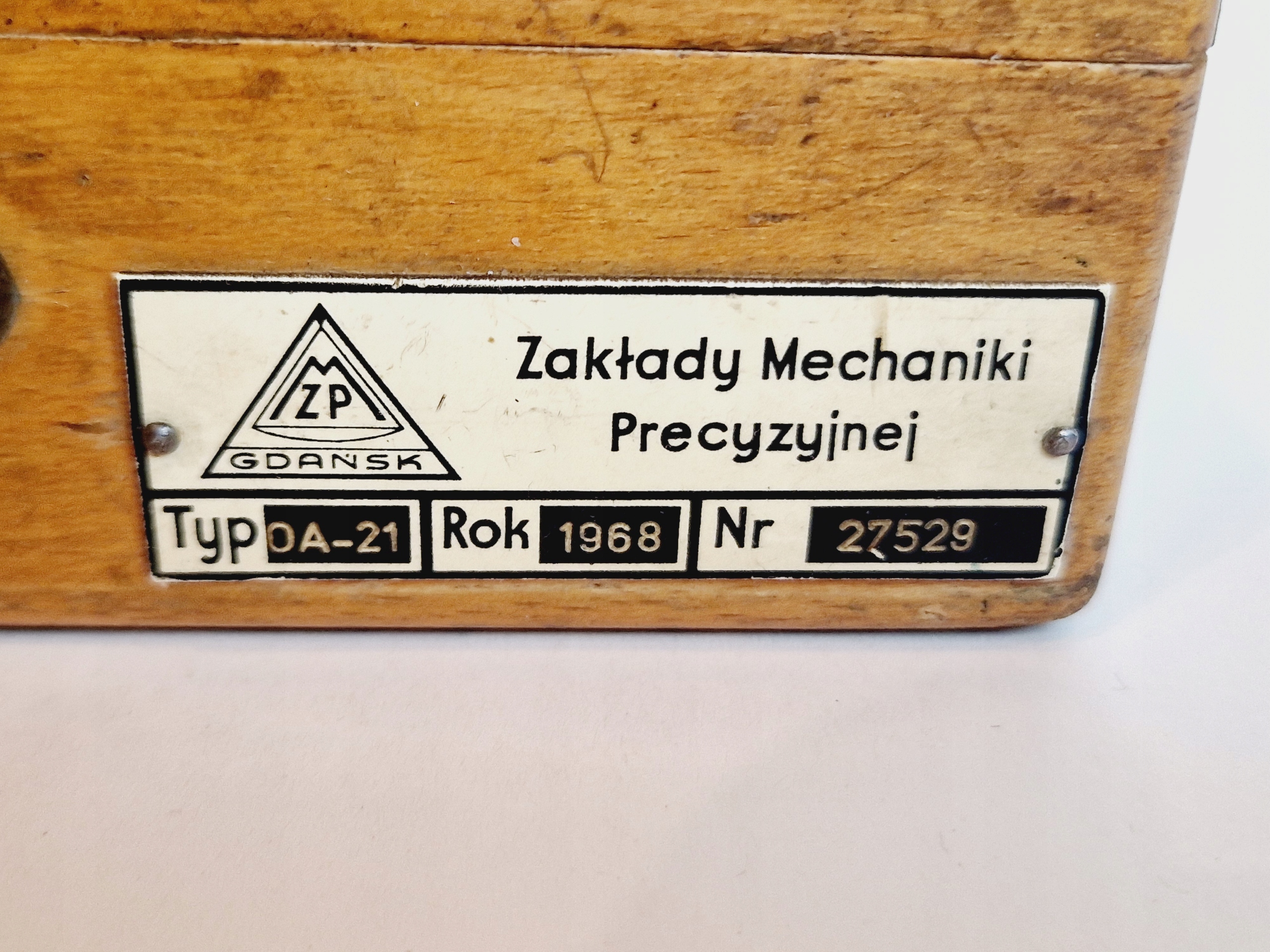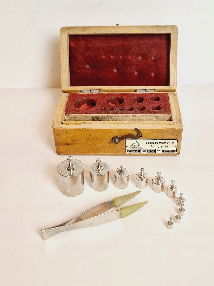 Набор прецизионных (*) лабораторных весов в деревянном футляре.