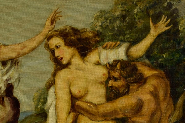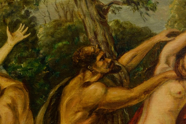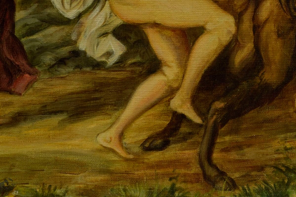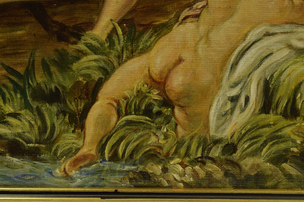 1969 Дж. Волк старая картина "Нимфы Диана и Фауна" Согласно Рубенсе, нефть 120,5x56,5