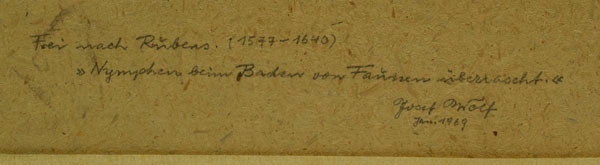 "Josef Wolf, картина, основанная на Рубенсе, Аллегорию нимф Диане и Фауне, 1969". h1> Состояние изображения хорошо видно. На изображениях мы приглашаем вас просмотреть прикрепленные фотографии. Неотъемлемая часть описания изображения.
