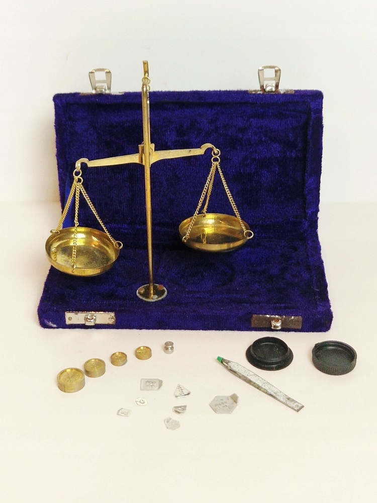 1970-е годы ИНДИЯ / НАБОР В ЧЕХОЛЕ – ВЕСЫ ДЛЯ ЮВЕЛИРНЫХ ИЗДЕЛИЙ + ГИРЫ /9913