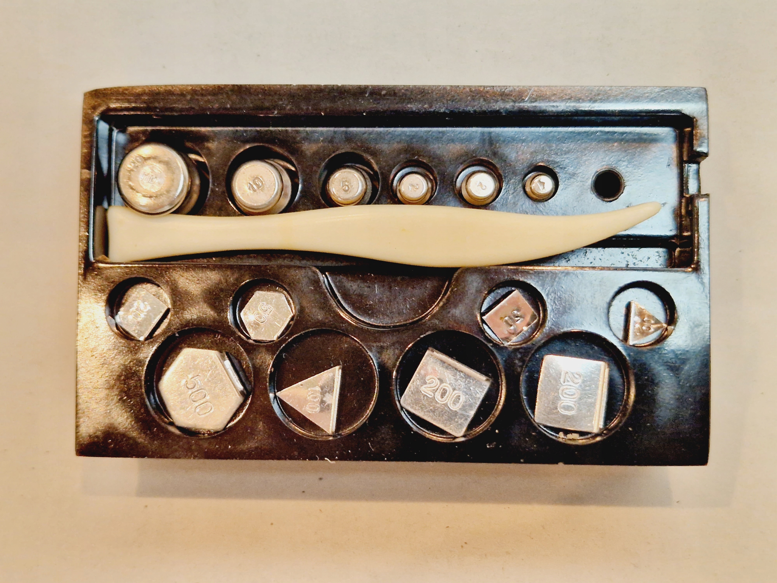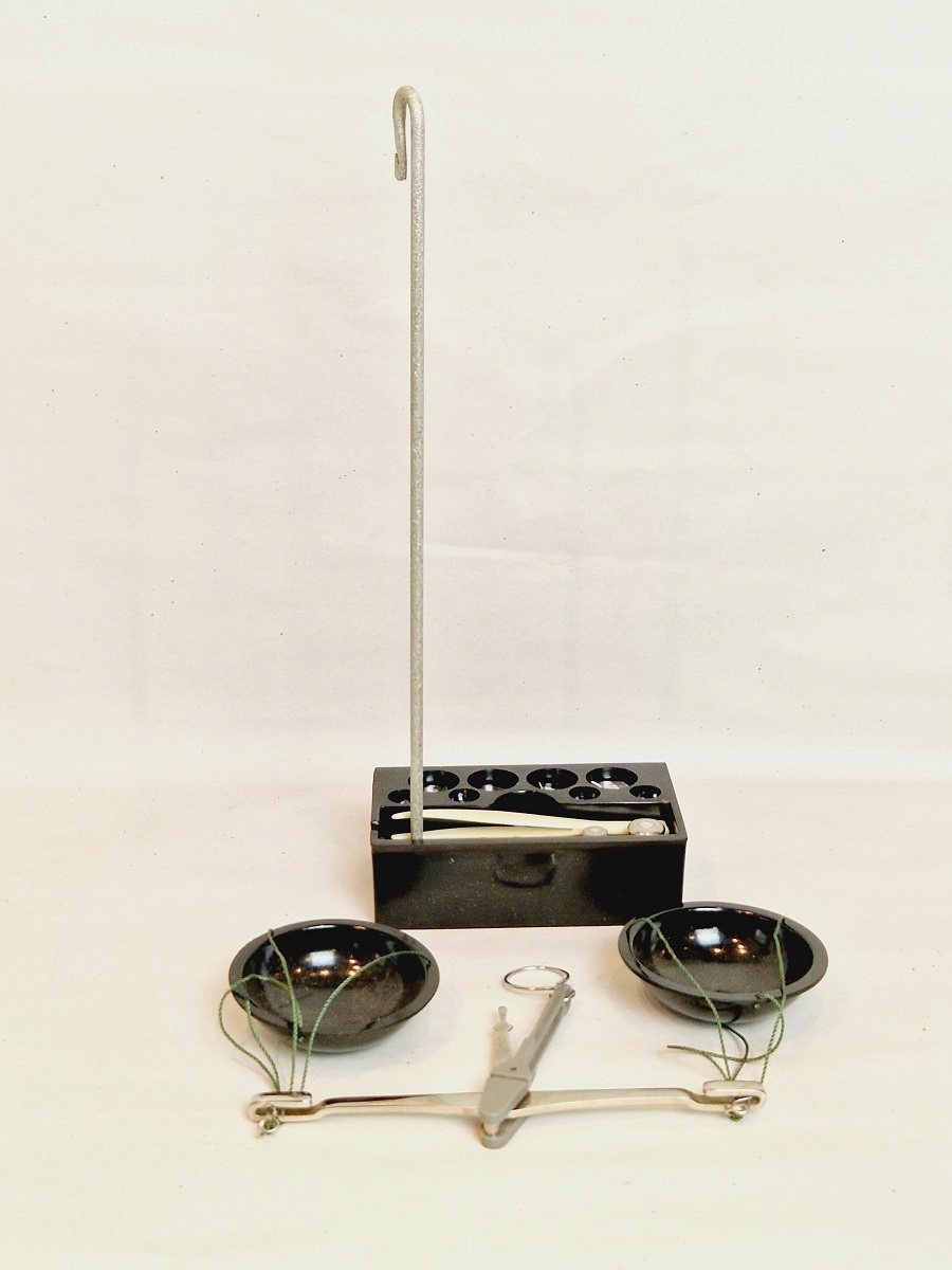 Весы и гири находятся в очень хорошем коллекционном и пригодном для использования состоянии (оригинальный пинцет).