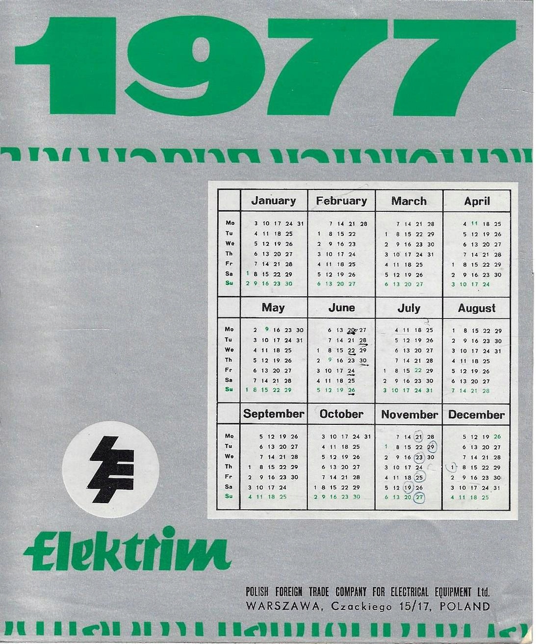 1977 - Электрим - рекламный календарь
