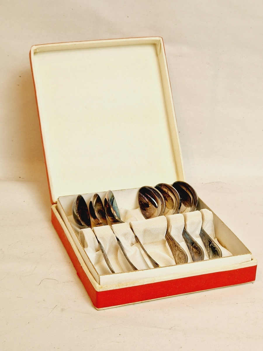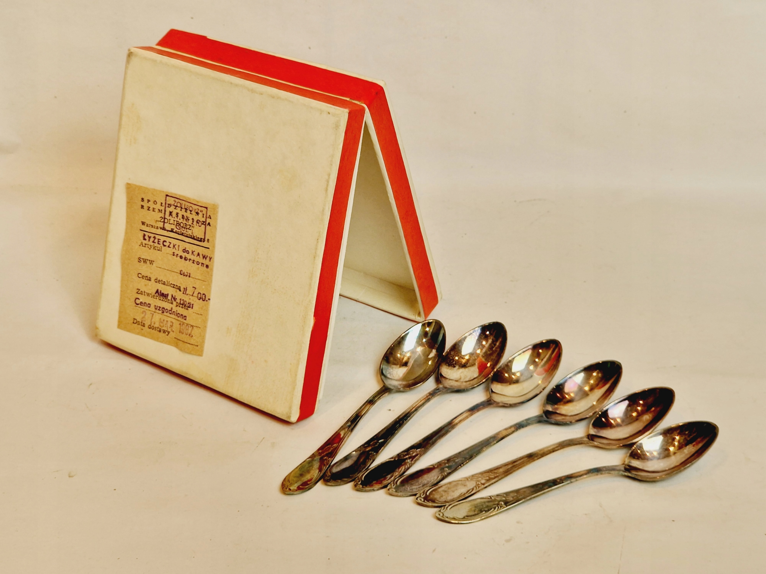 1982 / KPL 6szt - POSREBRZANE ŁYŻECZKI DO KAWY MET W ORYGINALNYM ETUI /4295