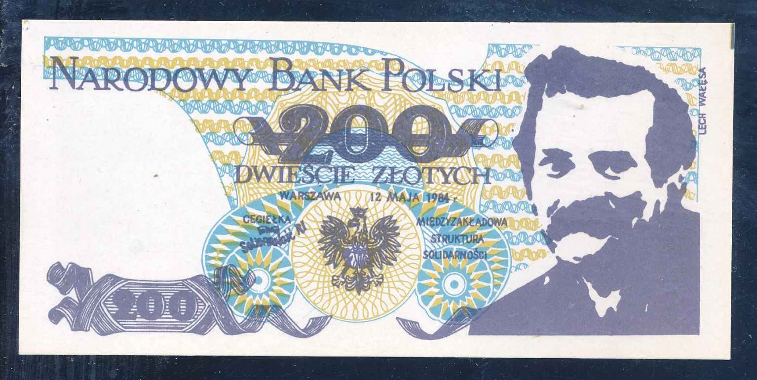 1984 Cegiełka, Солидарность RI, L. Naęsa, 200 Zlotys. ОК.