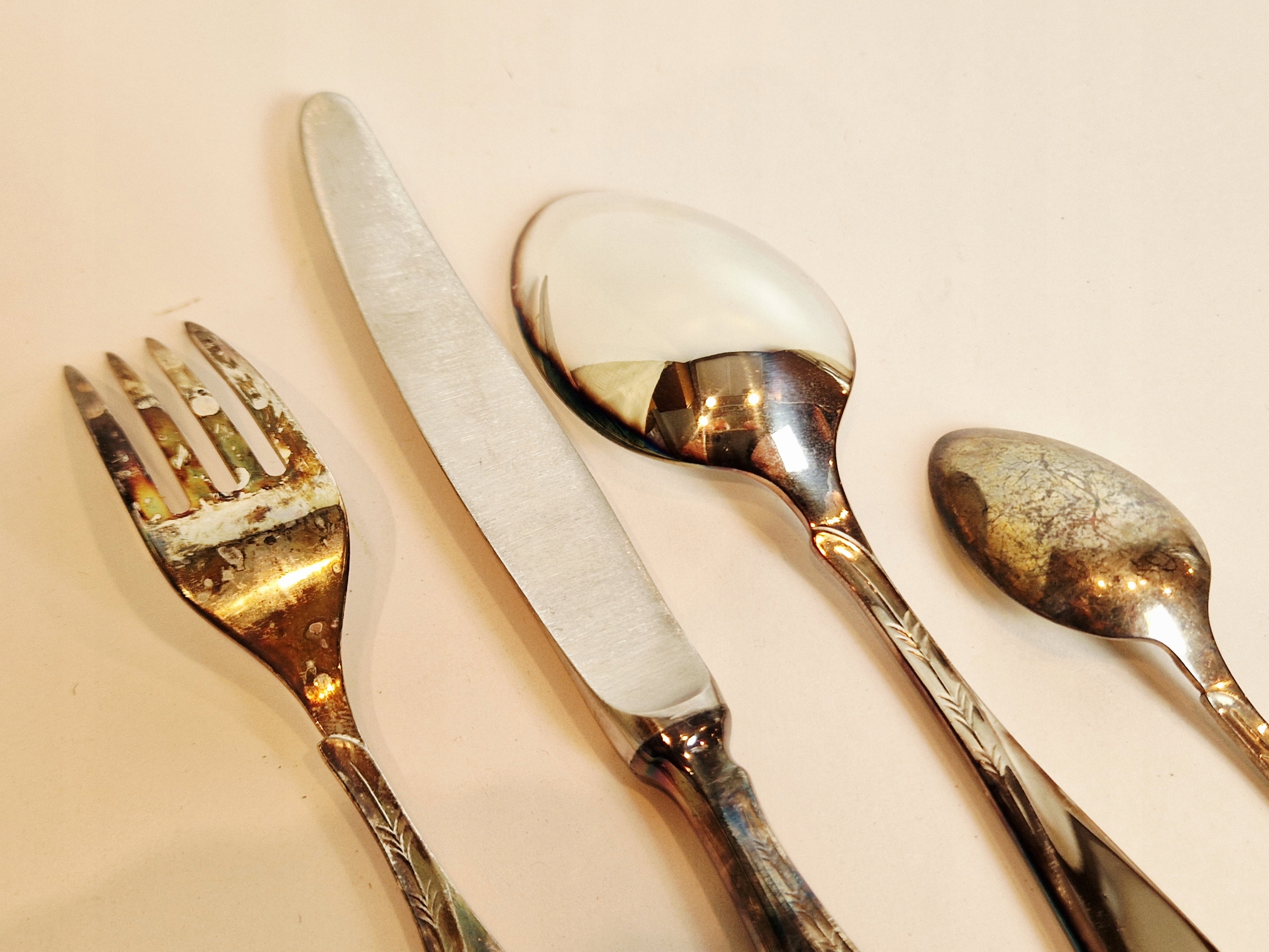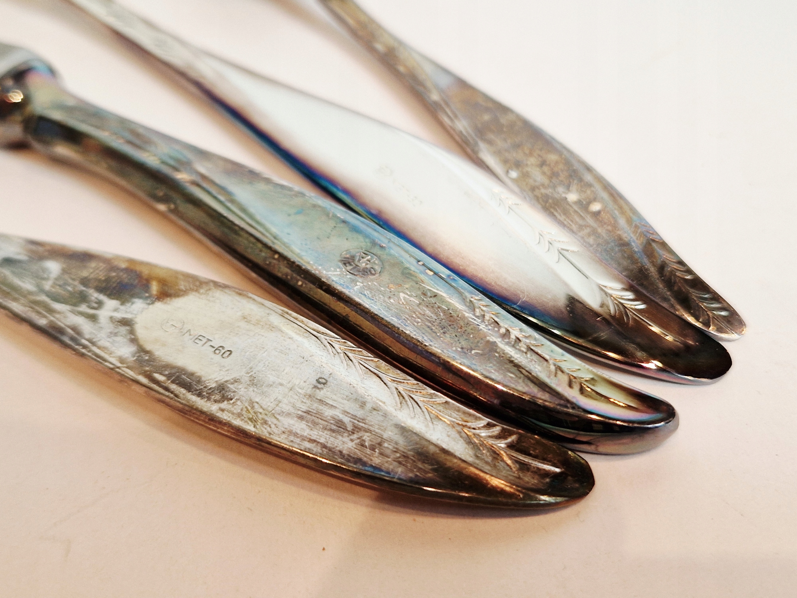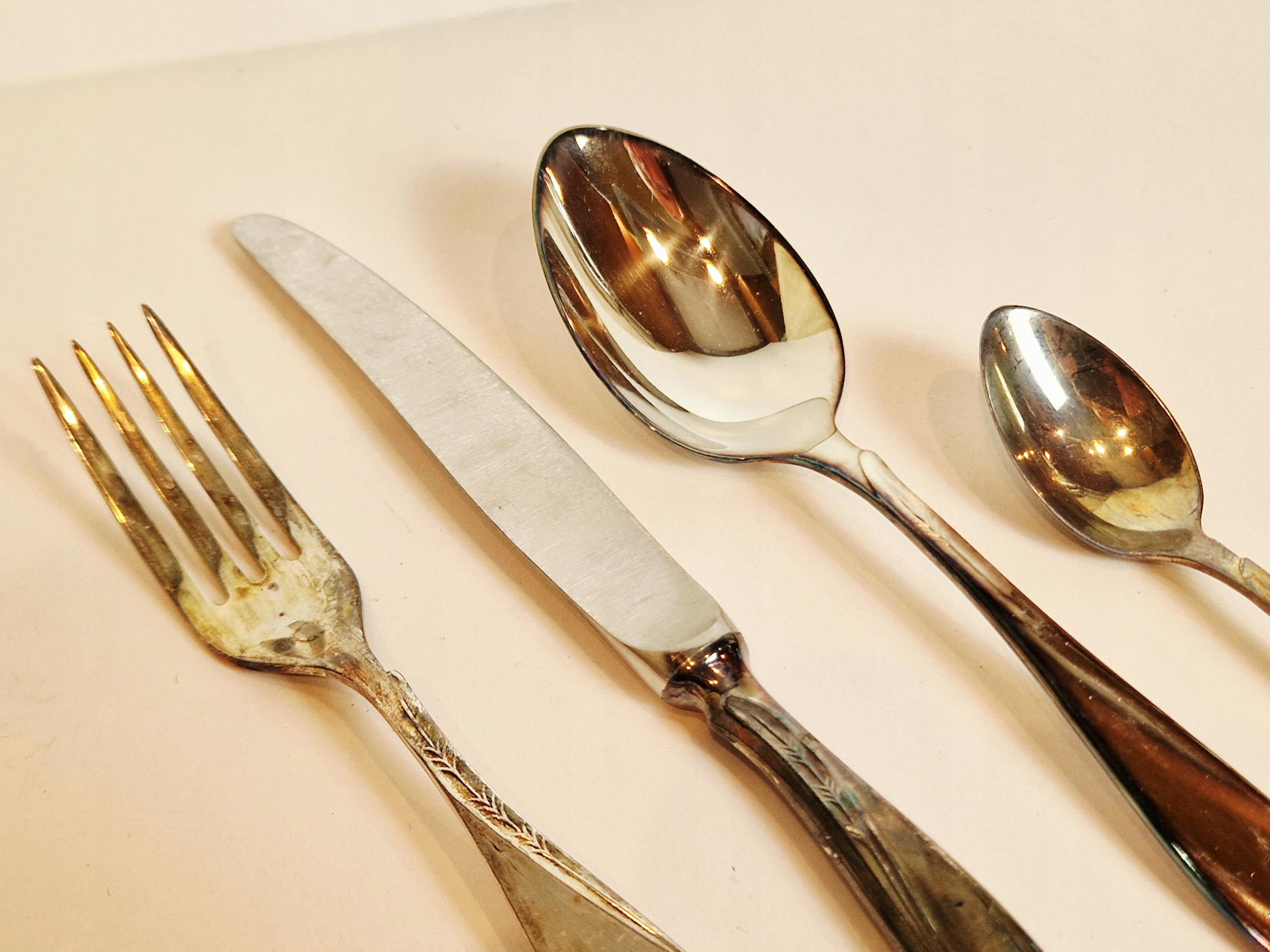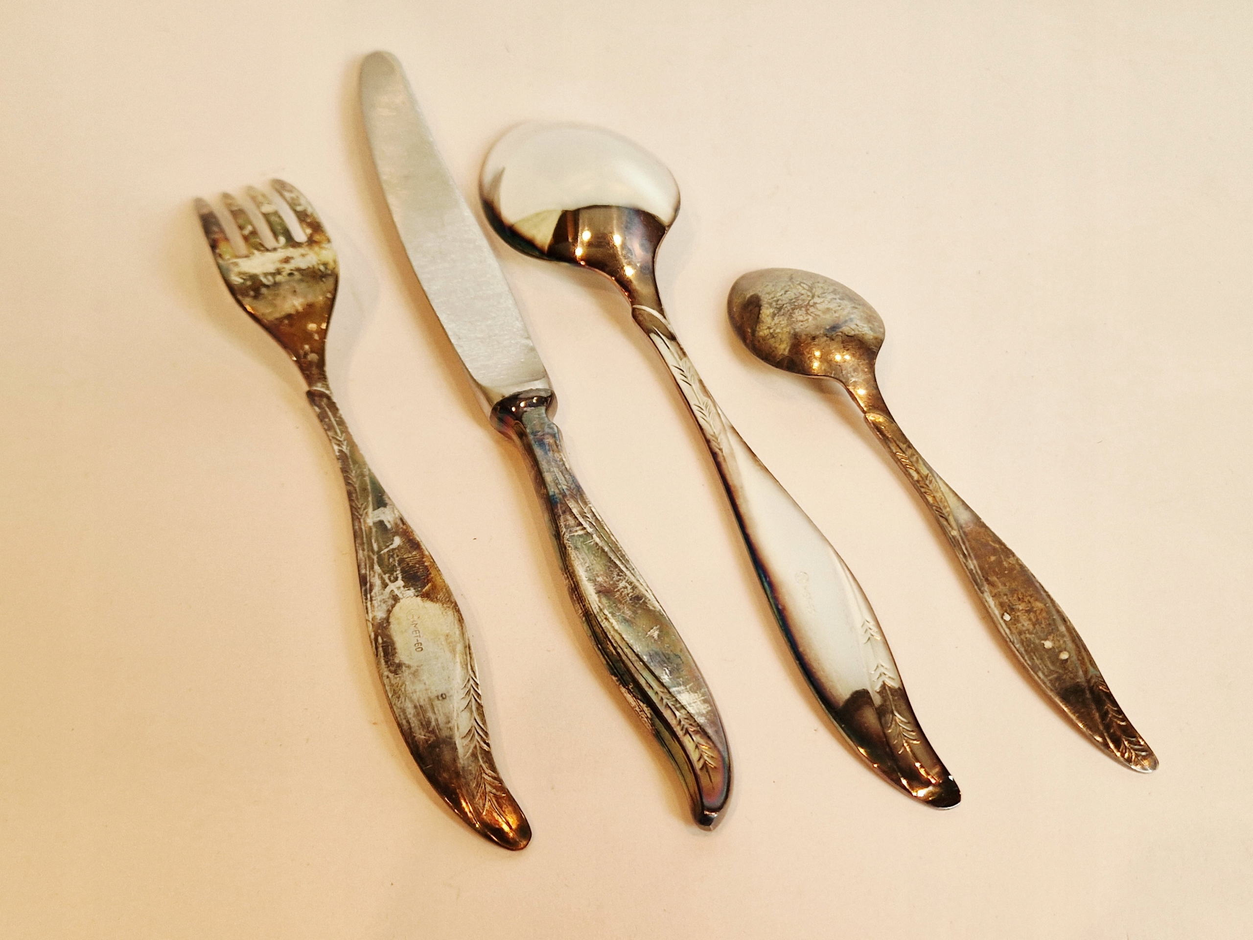 1987 ПОЛЬША / Набор из 24 предметов - СЕРЕБРЕННЫЕ СТОЛОВЫЕ ПРИБОРЫ HEFRA, АМЕРИКАНСКИЙ УЗОР /2596